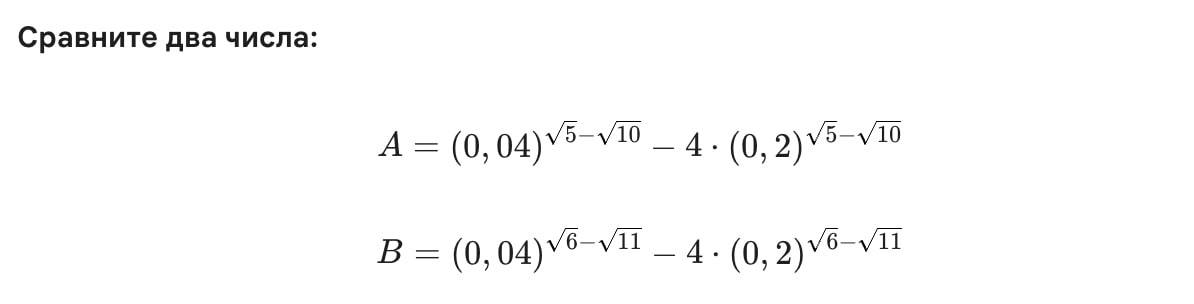 Итог: u(x_1)>u(x_2)>2 => t_1>t_2>2. Поэтому выполняется третий вариант и A>B.