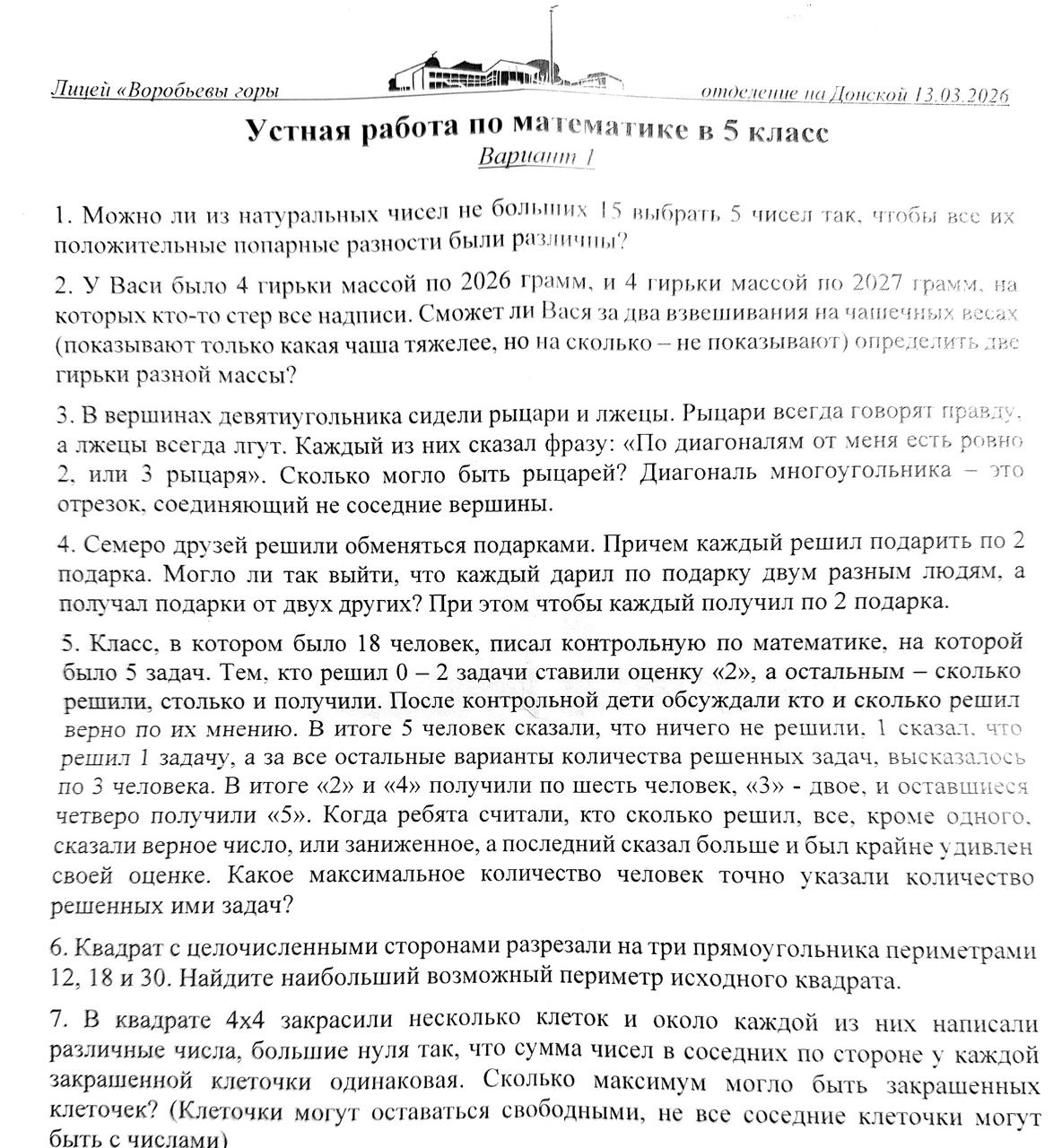 В этом году будет набор трёх новых математических классов: 5, 6 и 7, а также добор в уже существующие 8 и 9.