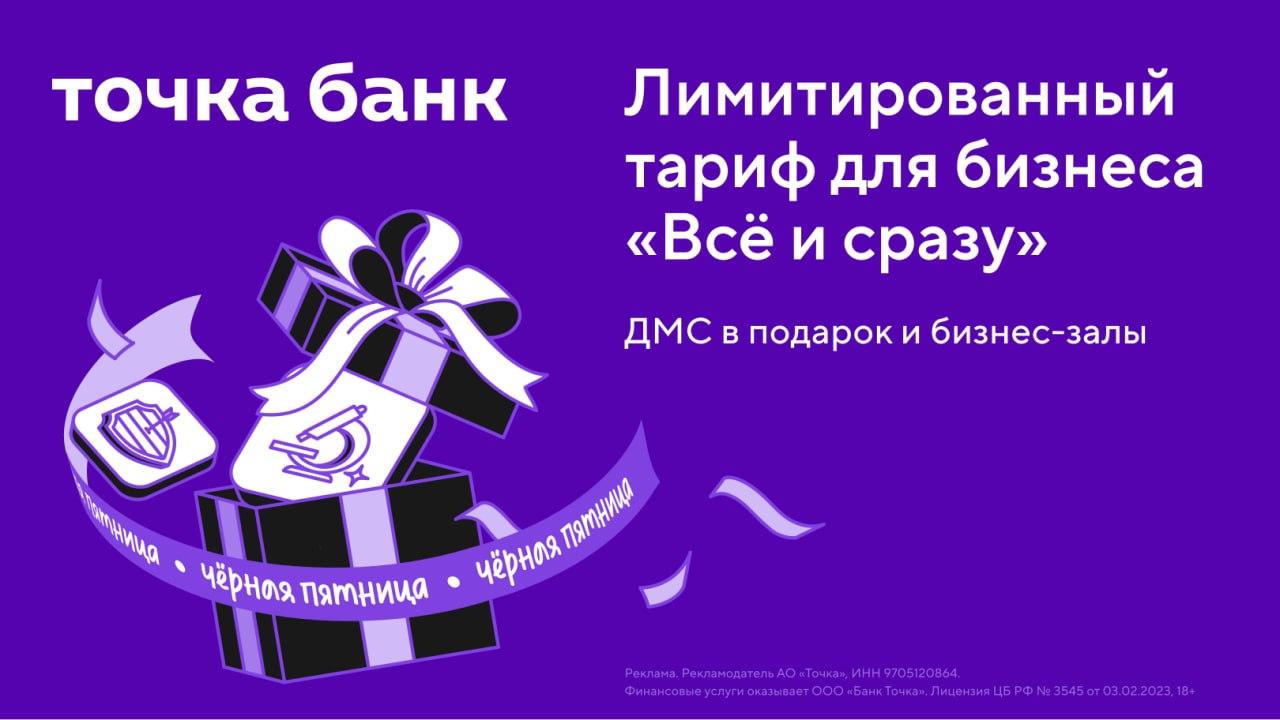 Тем, кто уже давно в бизнесе, Точка Банк в Чёрную пятницу предлагает повысить уровень комфорта с тарифом «Всё и сразу».