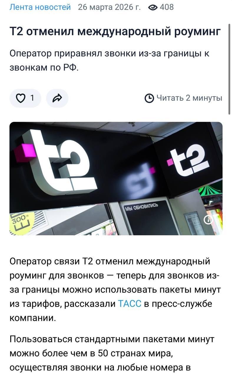 Т2 отменила роуминг для звонков из-за границы! Оператор приравнял их к звонкам по России на четырёх своих тарифах.