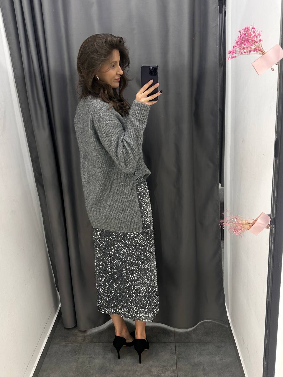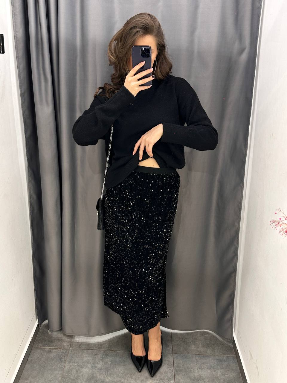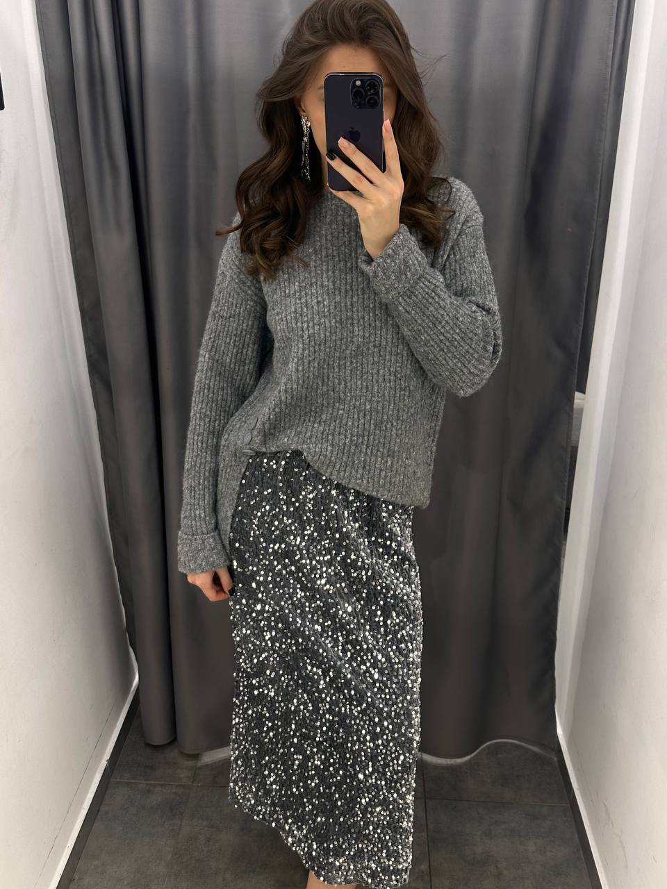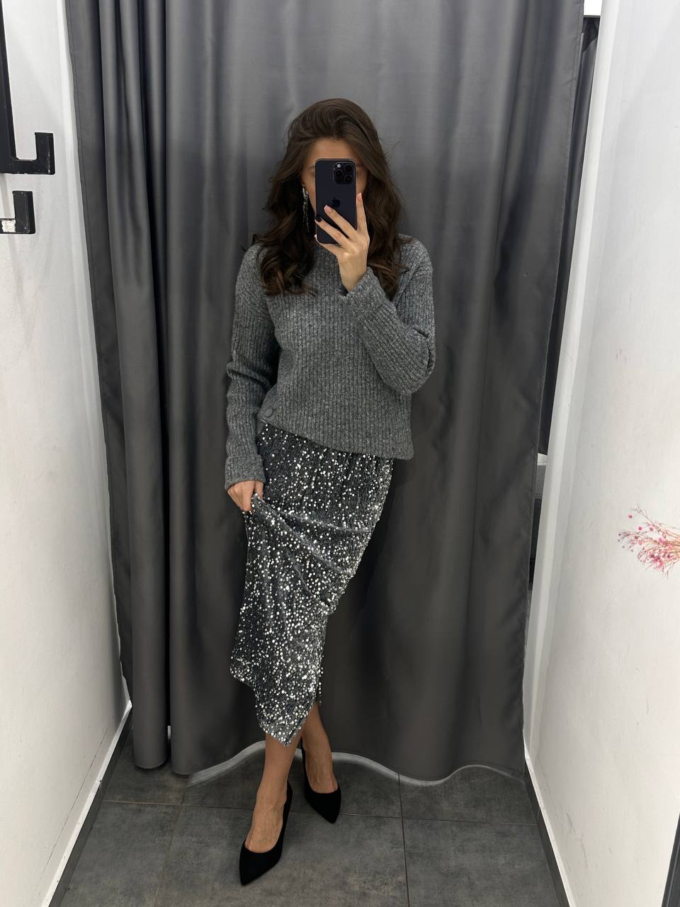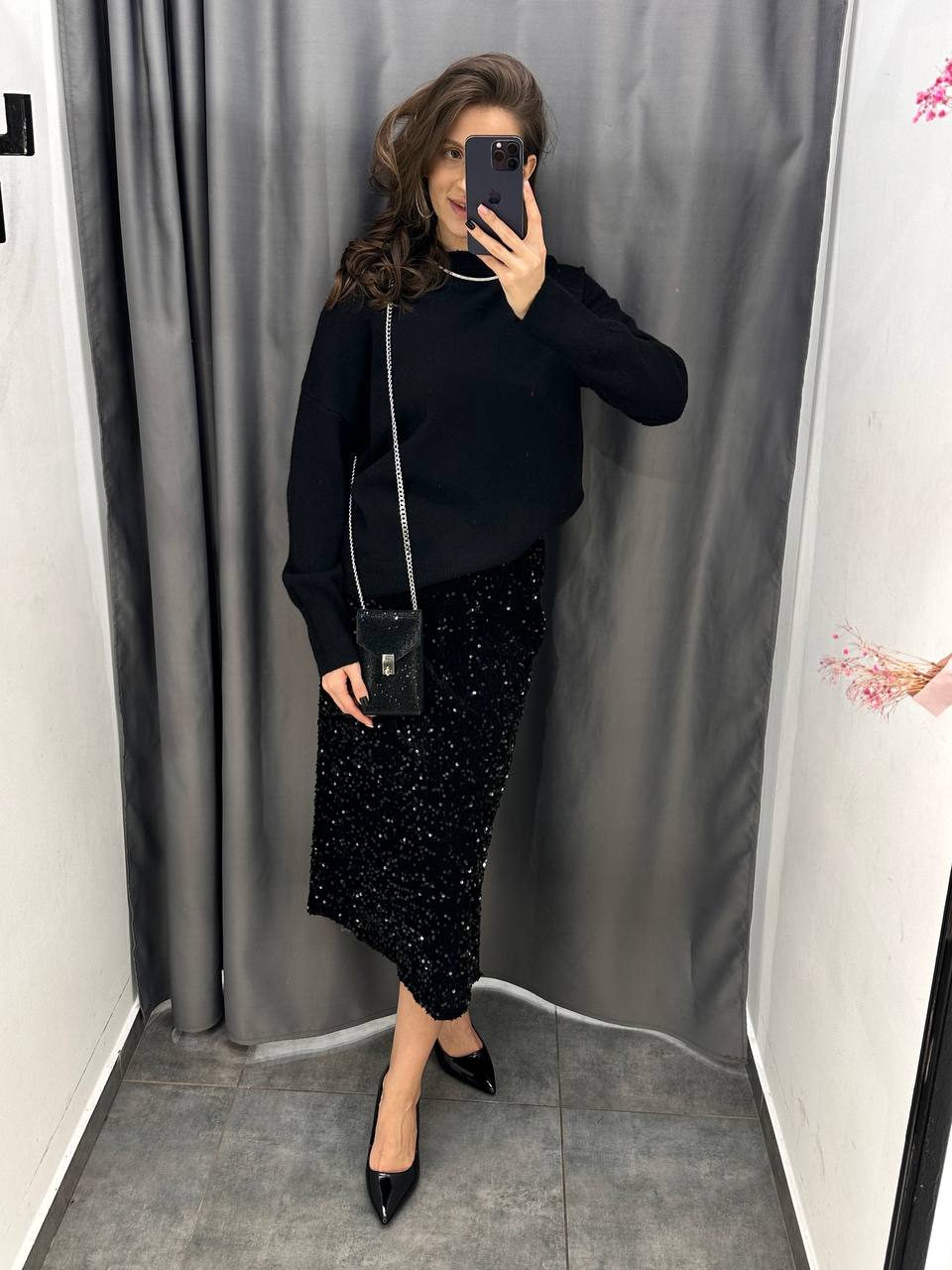 Юбка с пайетками и разрезом сбоку 2090₽
