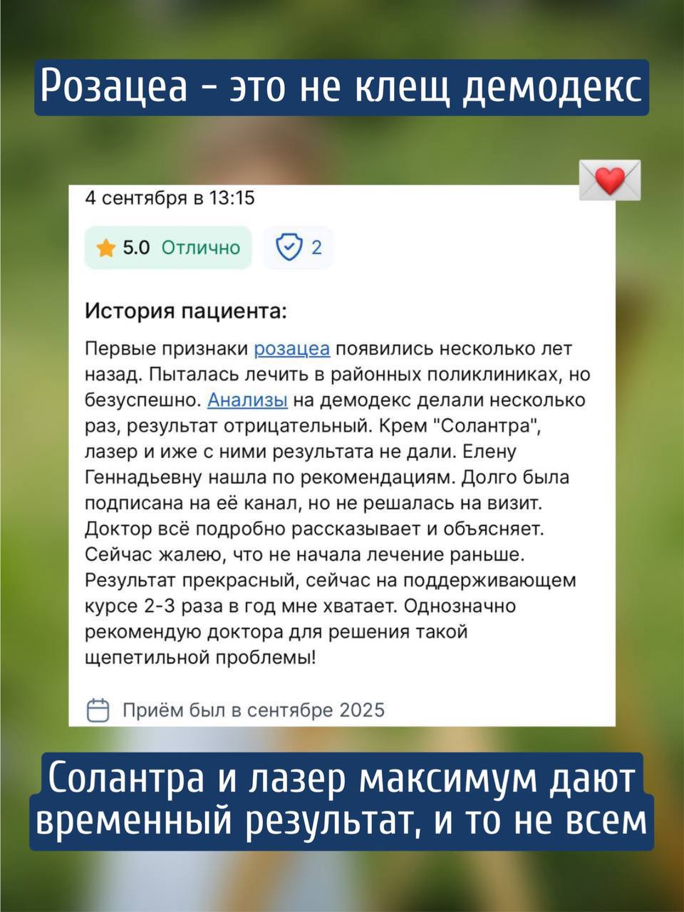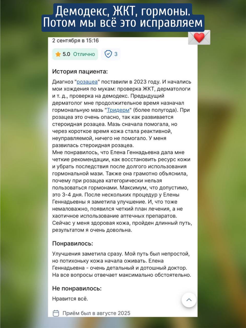 Тогда и не будет того множетства поломанных судеб людей, которые пытались быстро заглушить розацеа таблеточкой, мазью, уменьшив триггеры и потом через время пребывать в шоке: неужели это я с собой сделала!