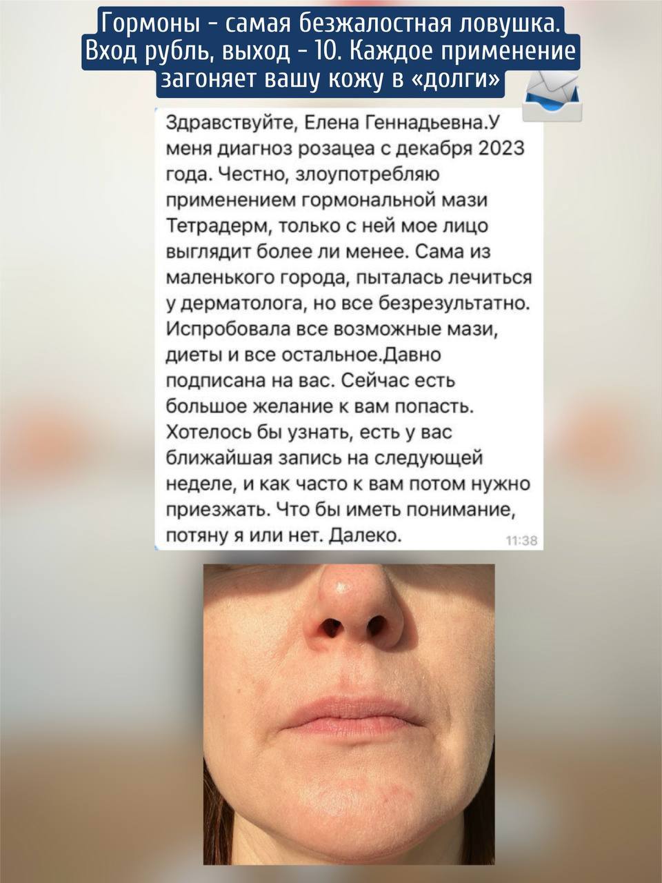 👩🏻 Пациентка обратилась с розацеа, когда внешне её не сильно видно, но незримые проявления вовсю мучают (о них завтра расскажу)