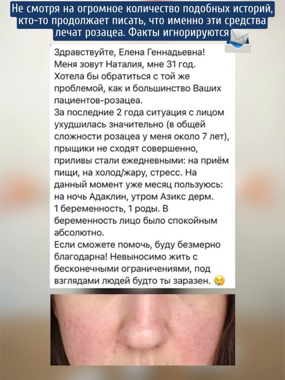 🤦🏼♀️ Ведь окружающие люди давят своим мнением: нет у тебя ничего, жди, когда розацеа будет невозможно замазать, потеряешь сон, семью, работу, радость жизни. Вот тогда и обращайся за лечением