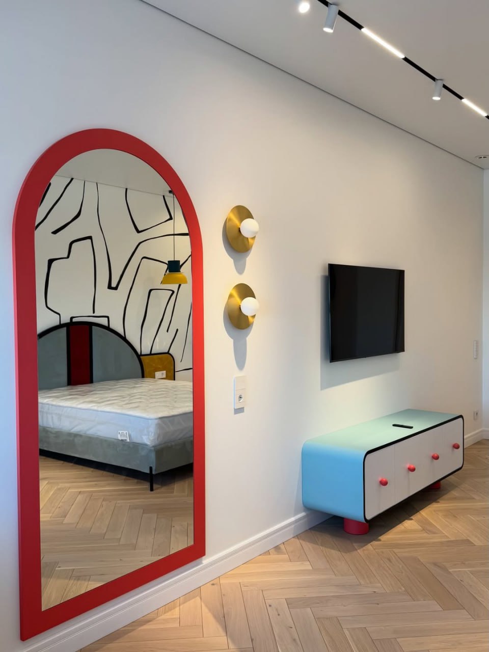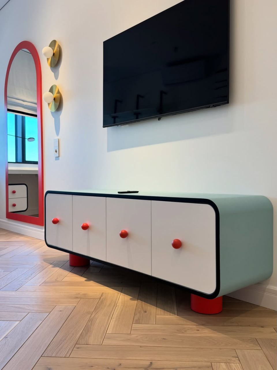 Внимательно отработали с размерами, светом и пропорциями, подружили радиусные стены и мебель, чтобы она «жила» в пространстве легко и не перегружала его.