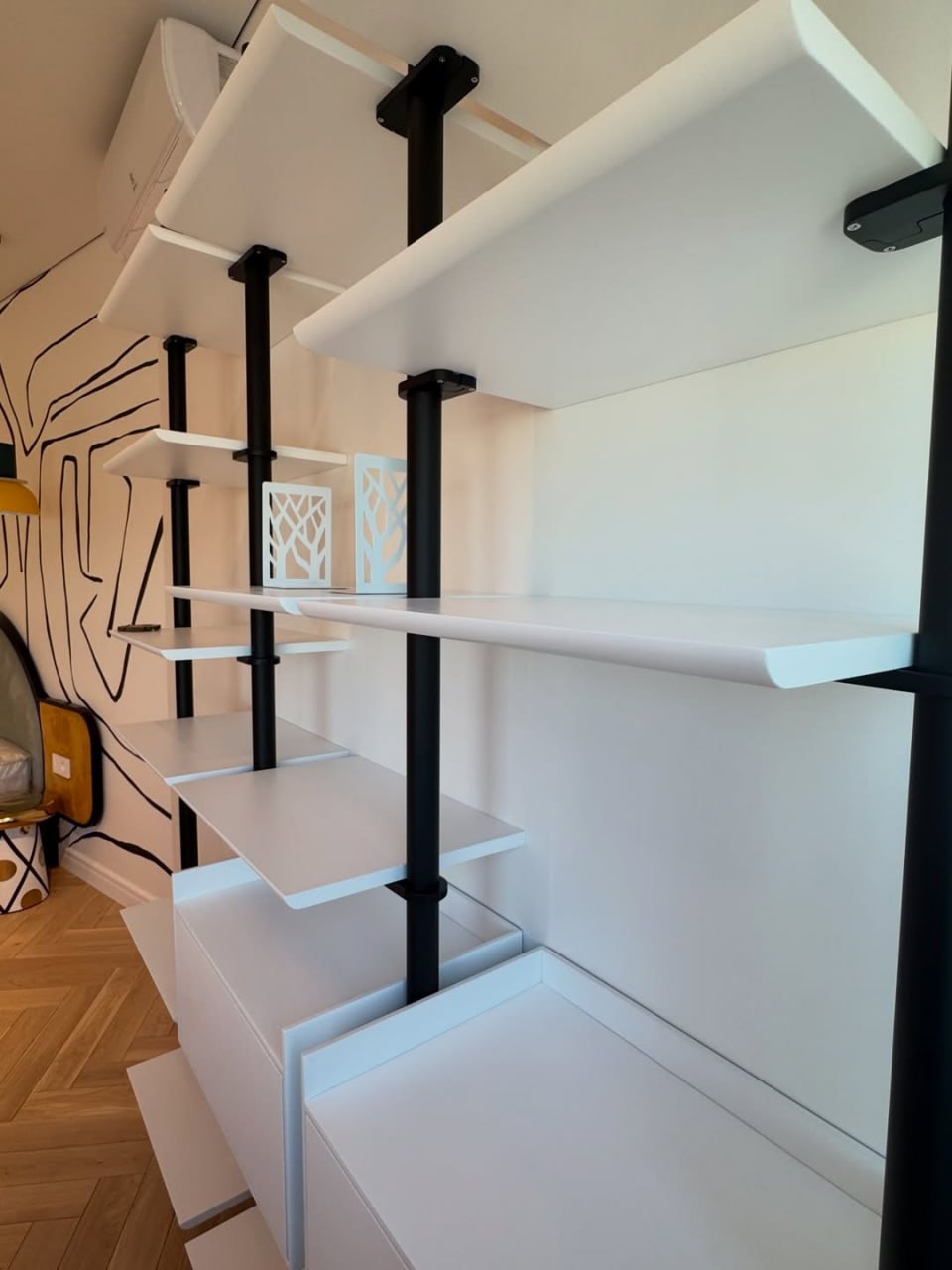 Открытые полки — для книг и любимых мелочей.