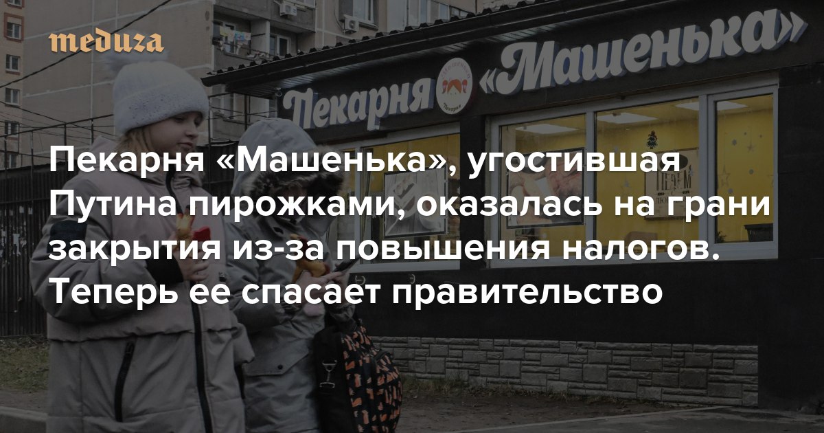 Как правительство спасает пекарню «Машенька», приглянувшуюся Путину Подмосковная пекарня «Машенька» стала известна в декабре, после того, как ее владелец Денис Максимов во время «прямой линии» задал Владимиру Путину вопрос о повышении налогов для бизнеса. Путин пообещал ему, что все будет хорошо, и попросил прислать пирожков. Спустя месяц Максимов рассказал, что внимание Путина увеличило продажи «Машеньки», но не решило проблему с налогами. Он допустил, что через пару месяцев пекарня закроется. После этого спасать ее начали силами российского правительства. «Медуза» рассказывает подробности. Открыть с VPN | без VPN @meduzalive