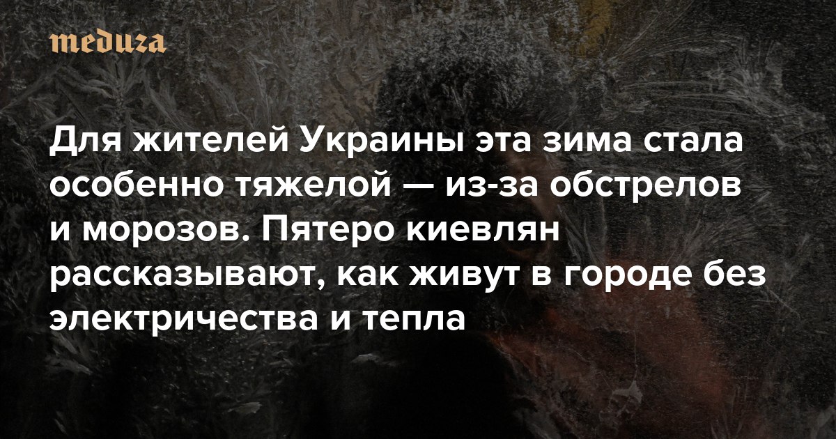 Лифты не работают. Вода замерзает в раковинах. Согреться невозможно. Почитайте, как живут украинцы в холодных квартирах без тепла и света Украина продолжает жить без тепла и света из-за непрекращающихся российских обстрелов. После того, как Россия в ночь на 24 января нанесла очередной удар по Киеву (одновременно с участием в мирных переговорах в Абу-Даби), без отопления в столице снова остались почти шесть тысяч домов. В соцсетях разошелся пост жительницы города Черновцы Ольги Попадюк, в котором она рассказывает, как это — жить в постоянном холоде. Почитайте его — и другие свидетельства украинцев, которые из-за постоянных российских обстрелов вынуждены жить в нечеловеческих условиях. Открыть с VPN | без VPN @meduzalive