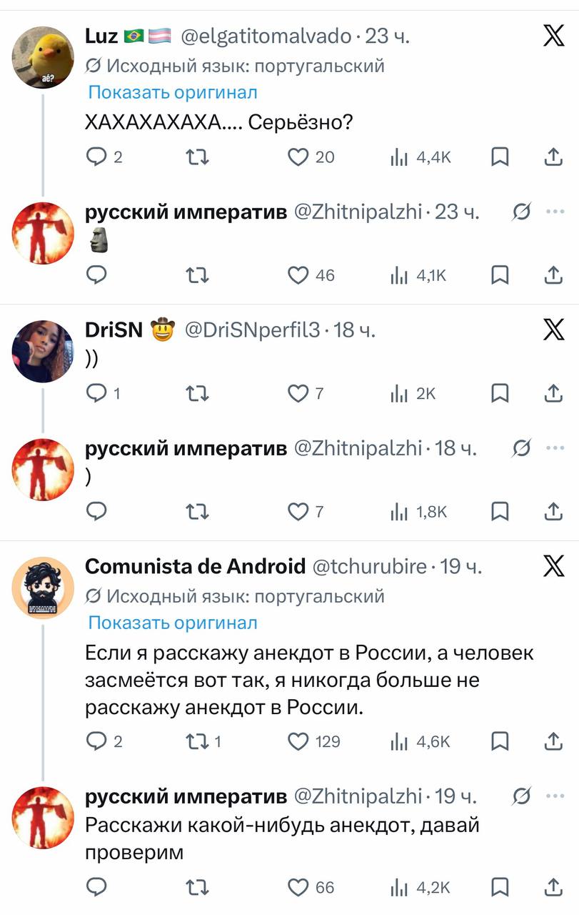 В-третьих, надо чтобы школьники написали сочинение по мотивам комментариев в соцсетях о приговоре террористам из Крокуса. Тема сочинения, скажем, "Кто и почему подставил этих достойных, и ни в чем не виновных, братьев".