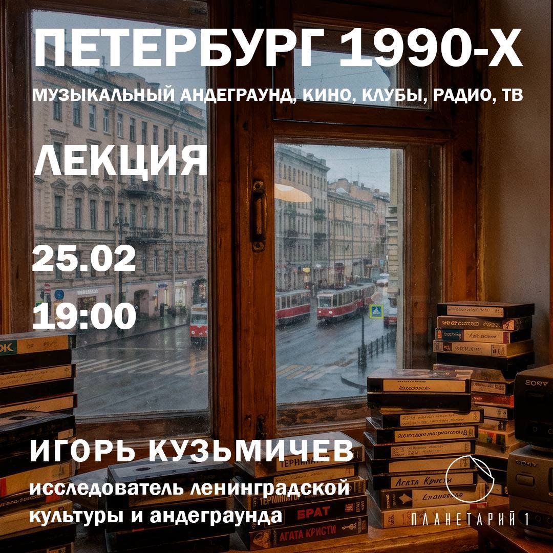 Музыкальные клубы, Пятый канал, «Новая Академия», Курехин, «Брат» (и не только, разумеется), Радио «Катюша» и т.д. - поговорим об этой странной эпохе в библиотеке Планетария 1. 25 февраля.