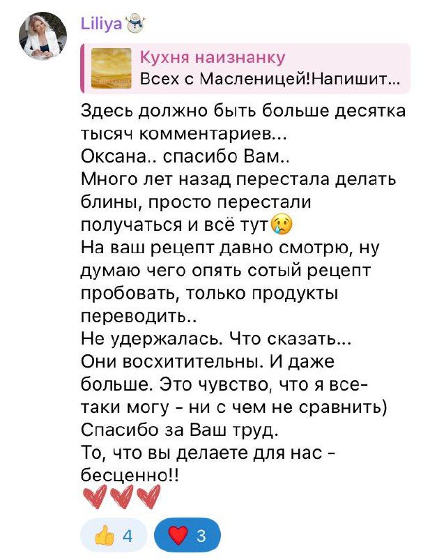 Спасибо за ваши отзывы! Это тааак приятно! Да, "бархатные" блинчики - наши любимые! И да, они идеальны!