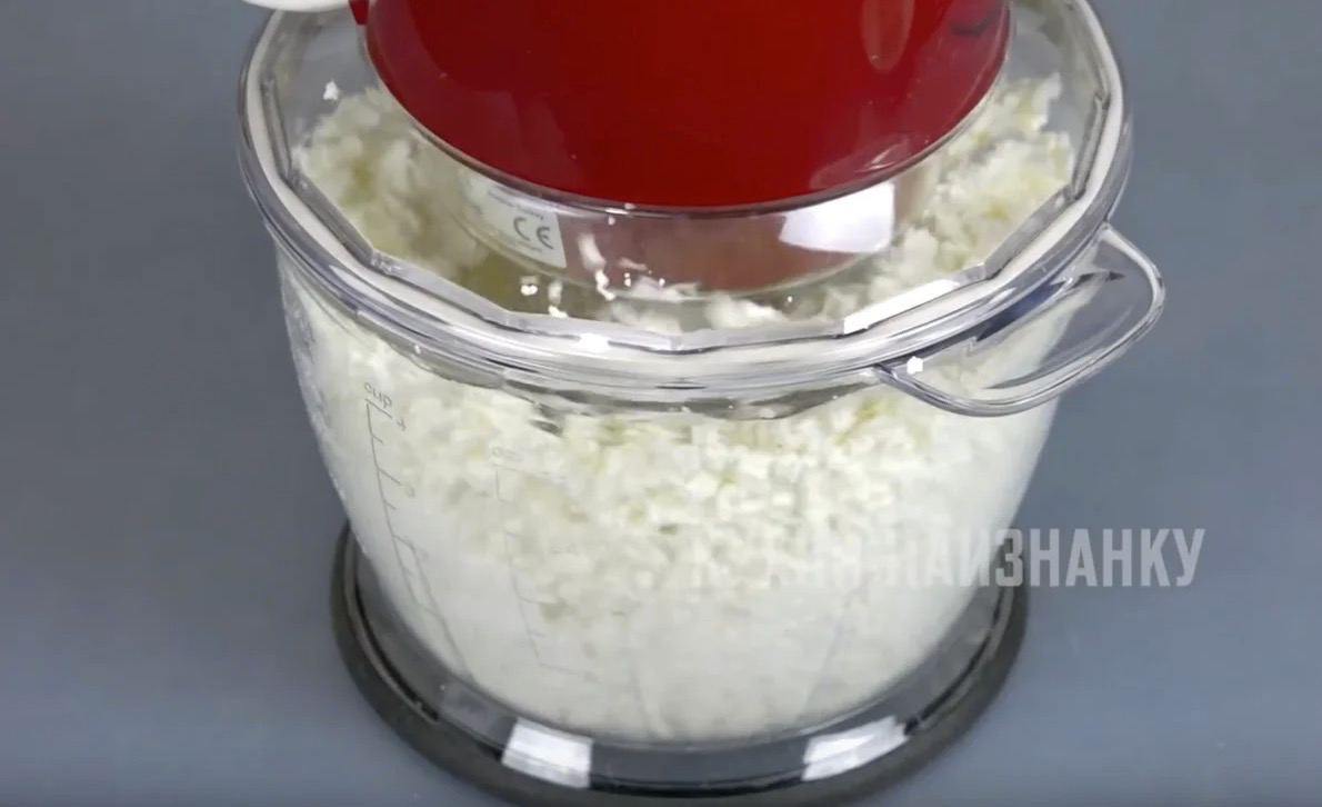 Основной ингредиент здесь - творог. Очень важно его хорошо измельчить. Я делаю это в измельчителе. Можно воспользоваться любым блендером или несколько раз перетереть творог через сито. Если этого не сделать, у вас получится обычный кекс))
