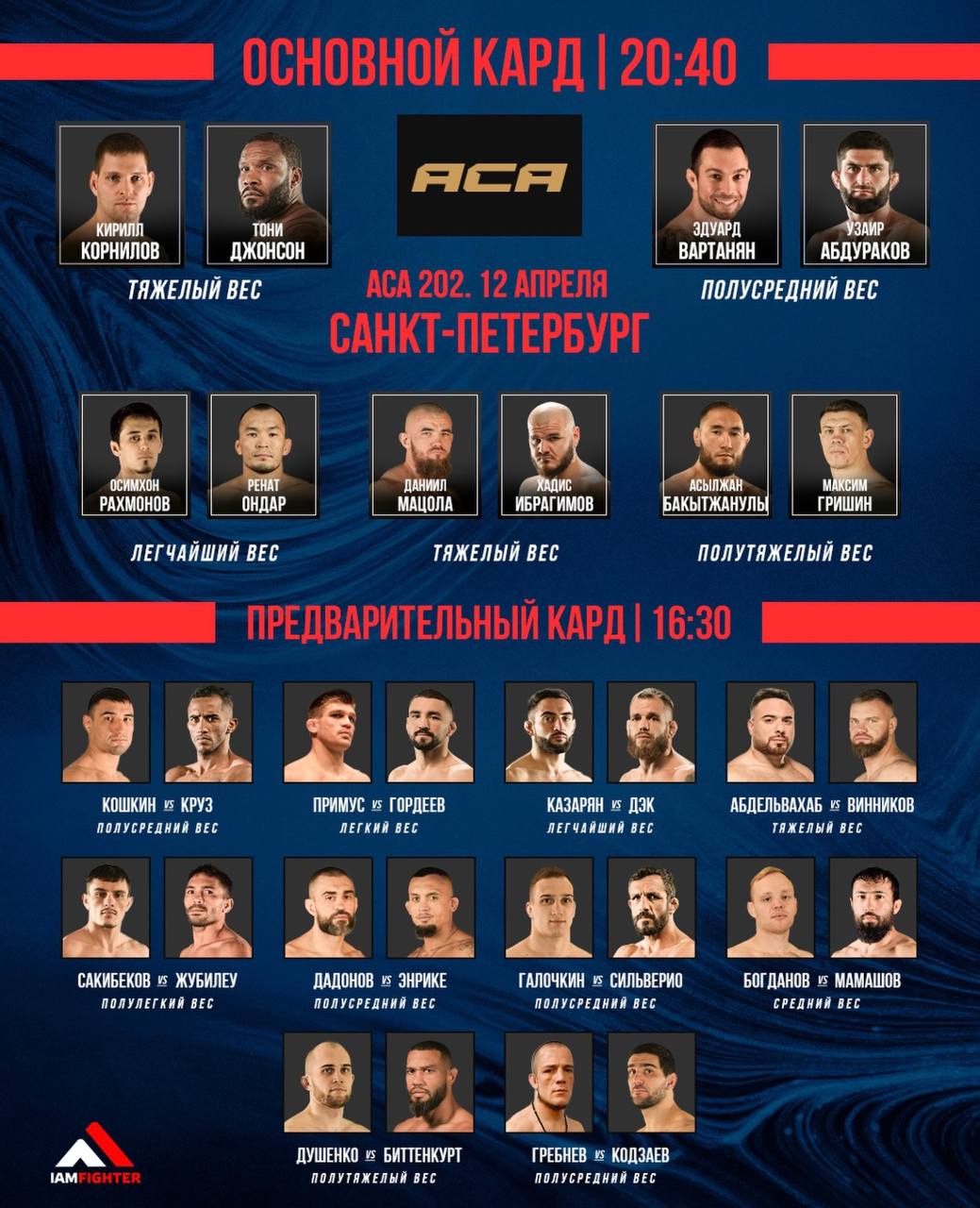Алтынбек ”Золотой” Мамашов 20-5-1 в первом раунде нокаутировал Ивана Богданова 18-6, в весе до 84 кг, на ”АСА 202” в Санкт-Петербурге.