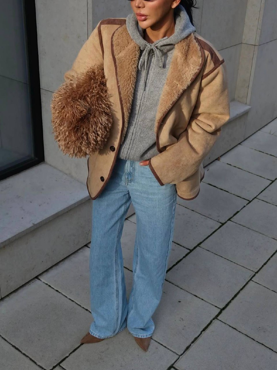 Образ с экошубой, который очень легко повторить. Поморите, как коричневый освежает черные вещи, думаю, в холодном сезоне это будет мое любимое сочетание!