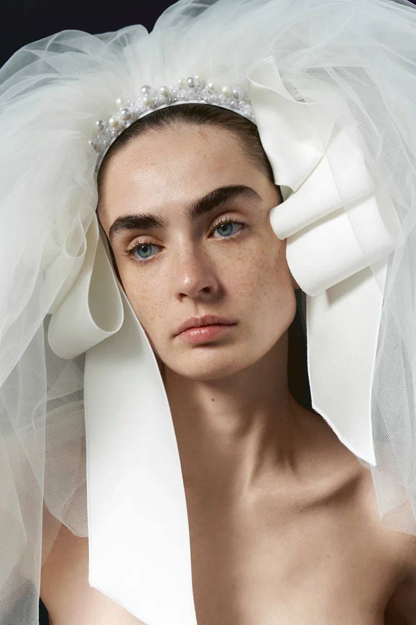 В основе – корсетная архитектура, выверенная линия талии и продуманная многослойность, которая дает объем, но сохраняет ощущение легкости. Оттенки белого представлены в сложной палите – от холодного фарфорового до теплого сливочного.
