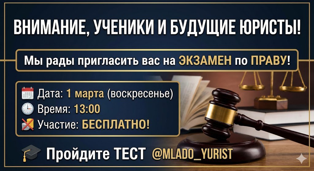 Мы рады пригласить вас на ЭКЗАМЕН по ПРАВУ! 🚀