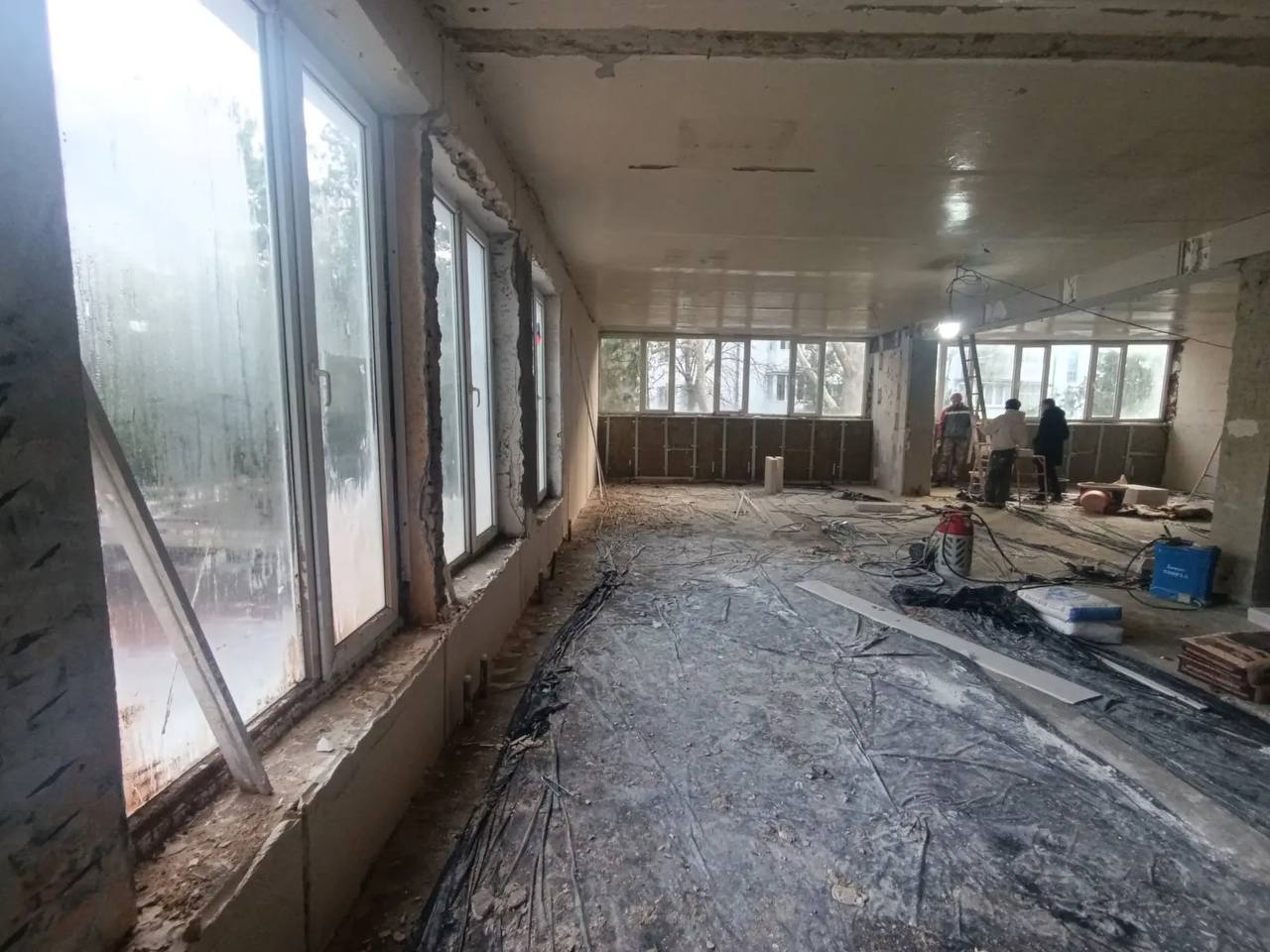 Обновление одного из самых популярных культурных общественных пространств города-курорта началось в ноябре прошлого года. Уже завершен ремонт кровли, демонтированы старые полы, смонтирована новая система отопления, залита стяжка пола, идут работы по оштукатуриванию стен.