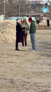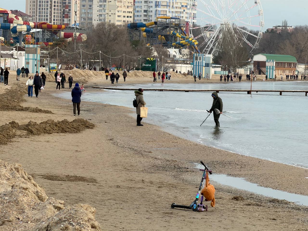 В Анапе убирают старые выбросы мазута, которые подняло со дна прибрежной части моря сильным штормом