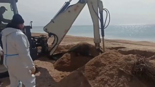 Работы уже провели от Центрального пляжа до пляжа "Тортуга" в селе Витязево, на территории косы (между с. Витязево и ст. Благовещенской) и в самой станице Благовещенской. В общей сложности убрали 26,2 км защитных сетей, осталось – еще 6,8 км на территории косы.