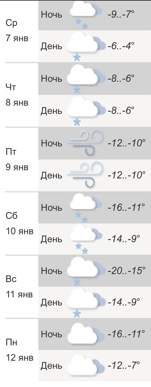 #погодавгороде 7 января, среда: облачно, небольшой снег и до -6 градусов.