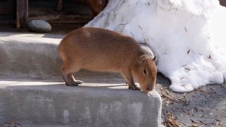 🔵Одними из первых на прогулку вышло семейство капибар. Первой на вылазку отправилась маленькая Симка, родившаяся осенью прошлого года. Для нее и ее сестры Верты этот выход стал первым в жизни знакомством с улицей.