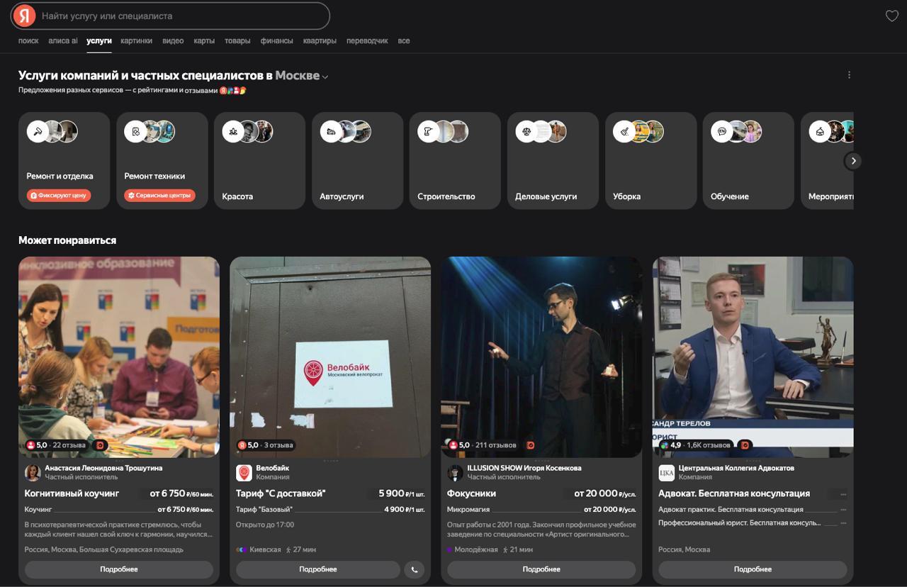 🔍 Яндекс запустил Поиск по Услугам