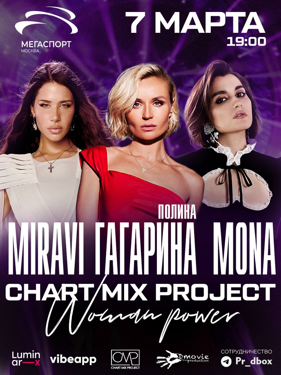 7 марта Полина Гагарина, MONA, MIRAVI вместе выступят на шоу Chart Mix Women Power!