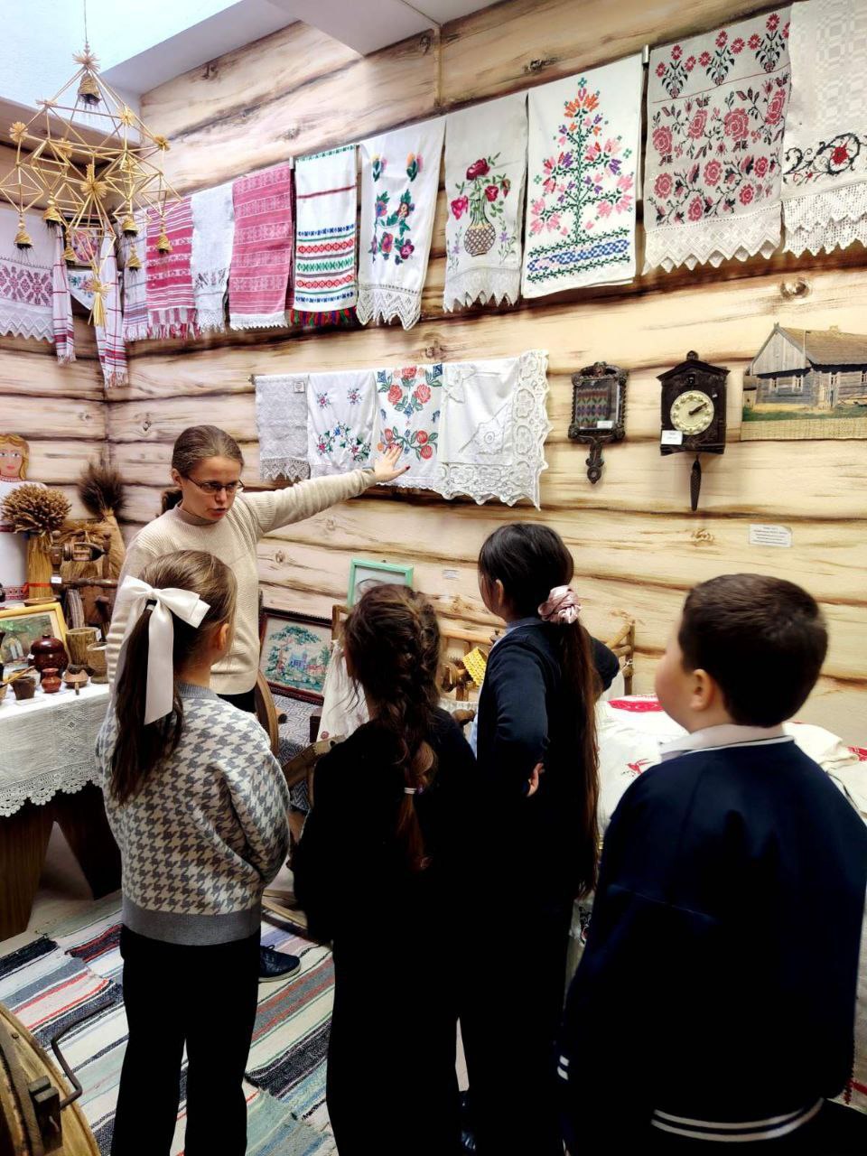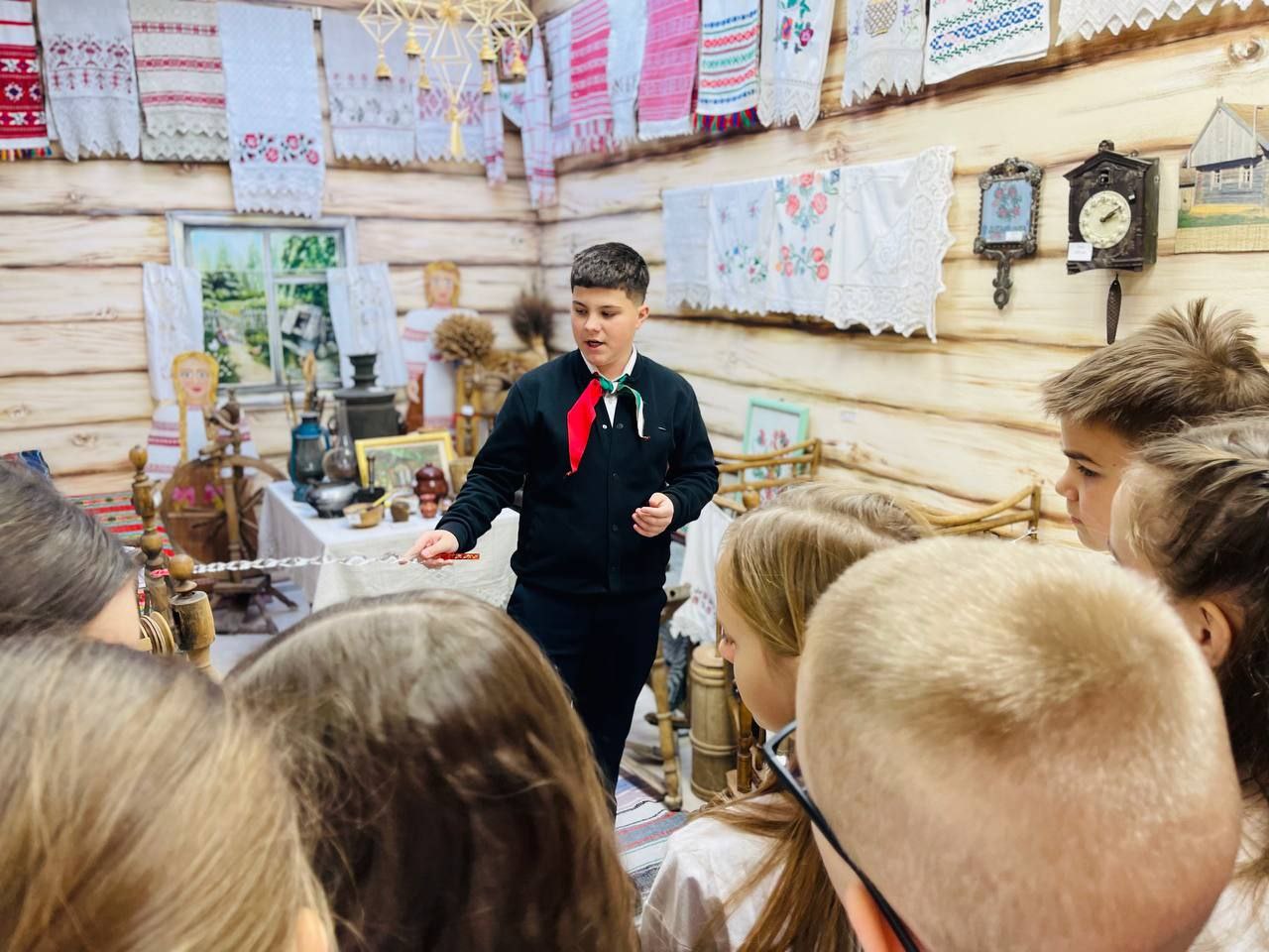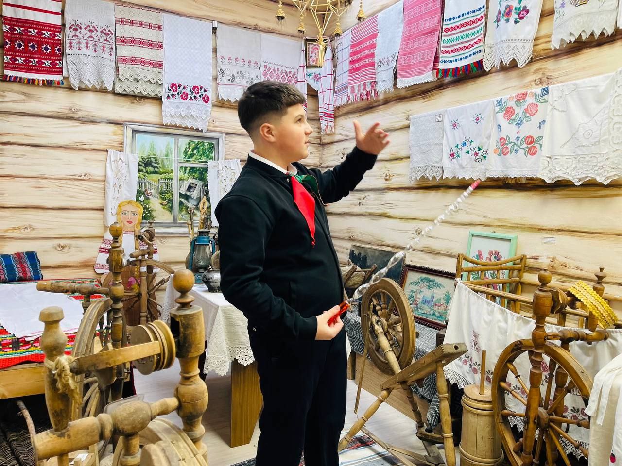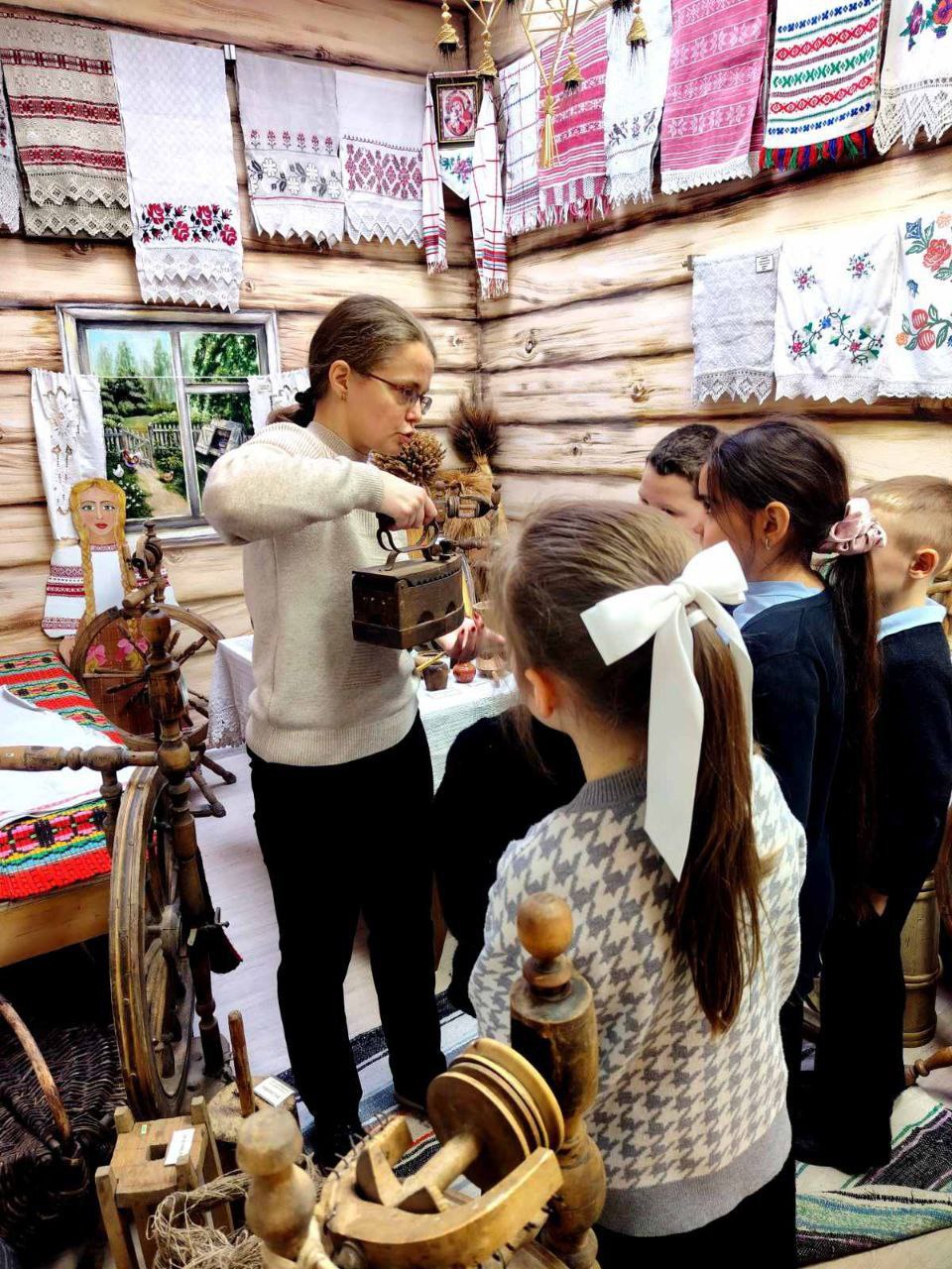 Специальным подарком для них стала экскурсия по экспозиции «Беларуская хатка» — настоящий живой уголок родной деревни, где каждая вещь говорит на языке предков.