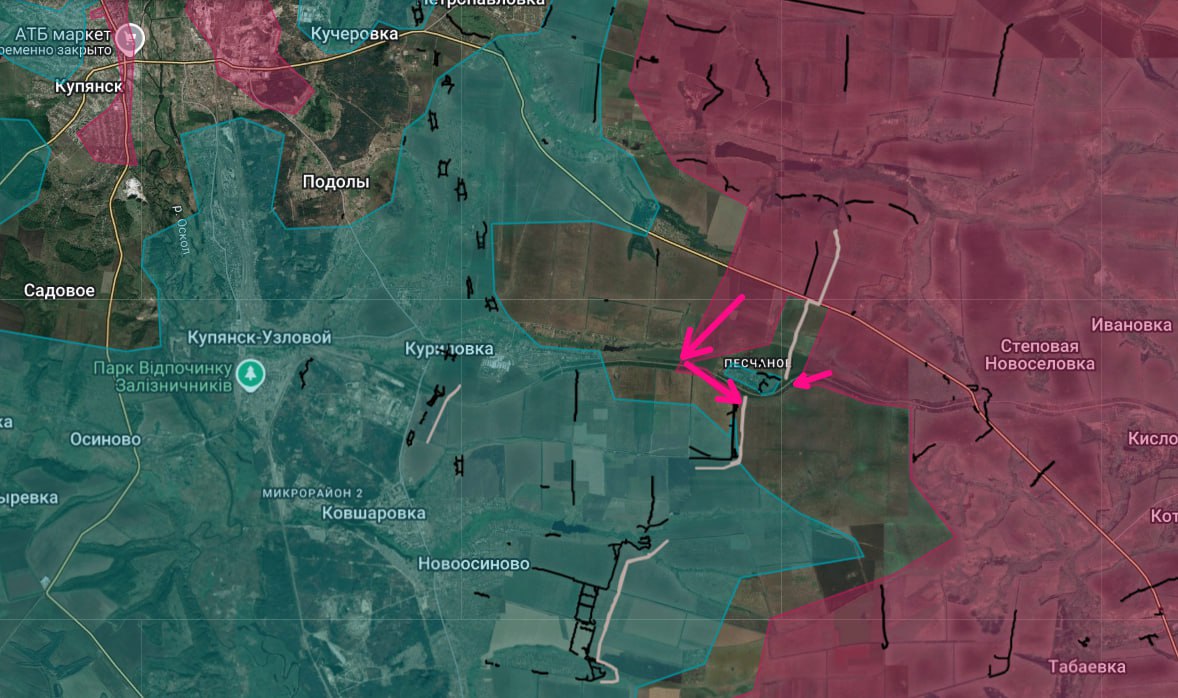 1 – Восточно-Купянское направление. Продолжаются бои за село Верхнее Песчаное. Наши бойцы атакуют его с трёх направлений – с запада, севера и востока.