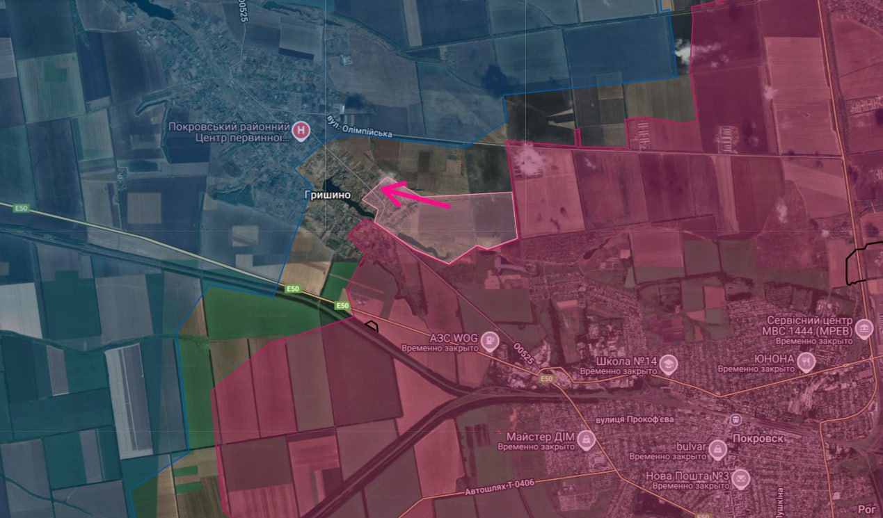 4 – Район Покровска, Гришино. Есть успехи севернее пруда, расположенного в селе. Наши бойцы взяли под контроль несколько улиц.