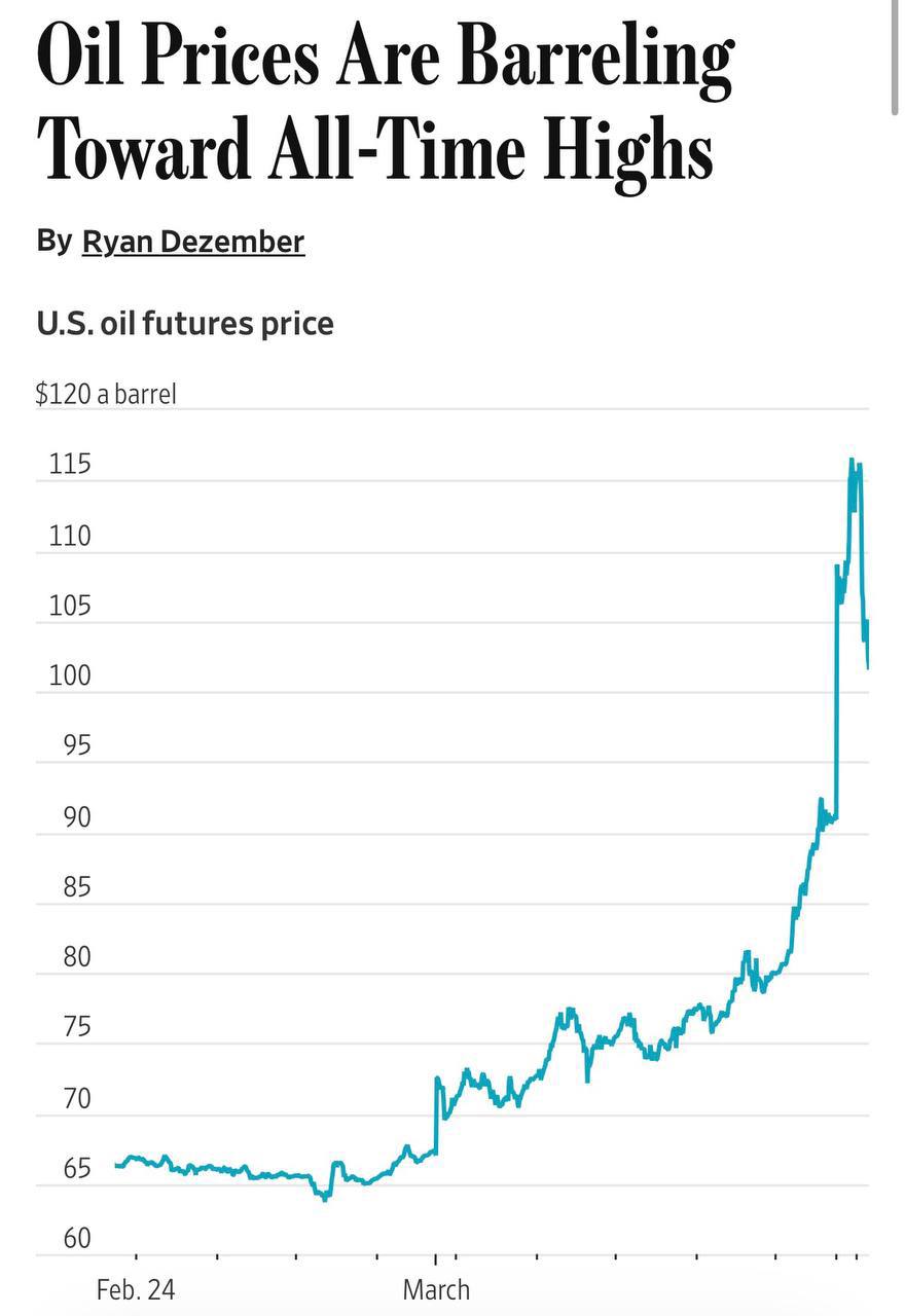 Alle 5:35 ora di Mosca (2:35 GMT), il prezzo del petrolio era di 117,8 dollari al barile (in aumento del 27,09%).