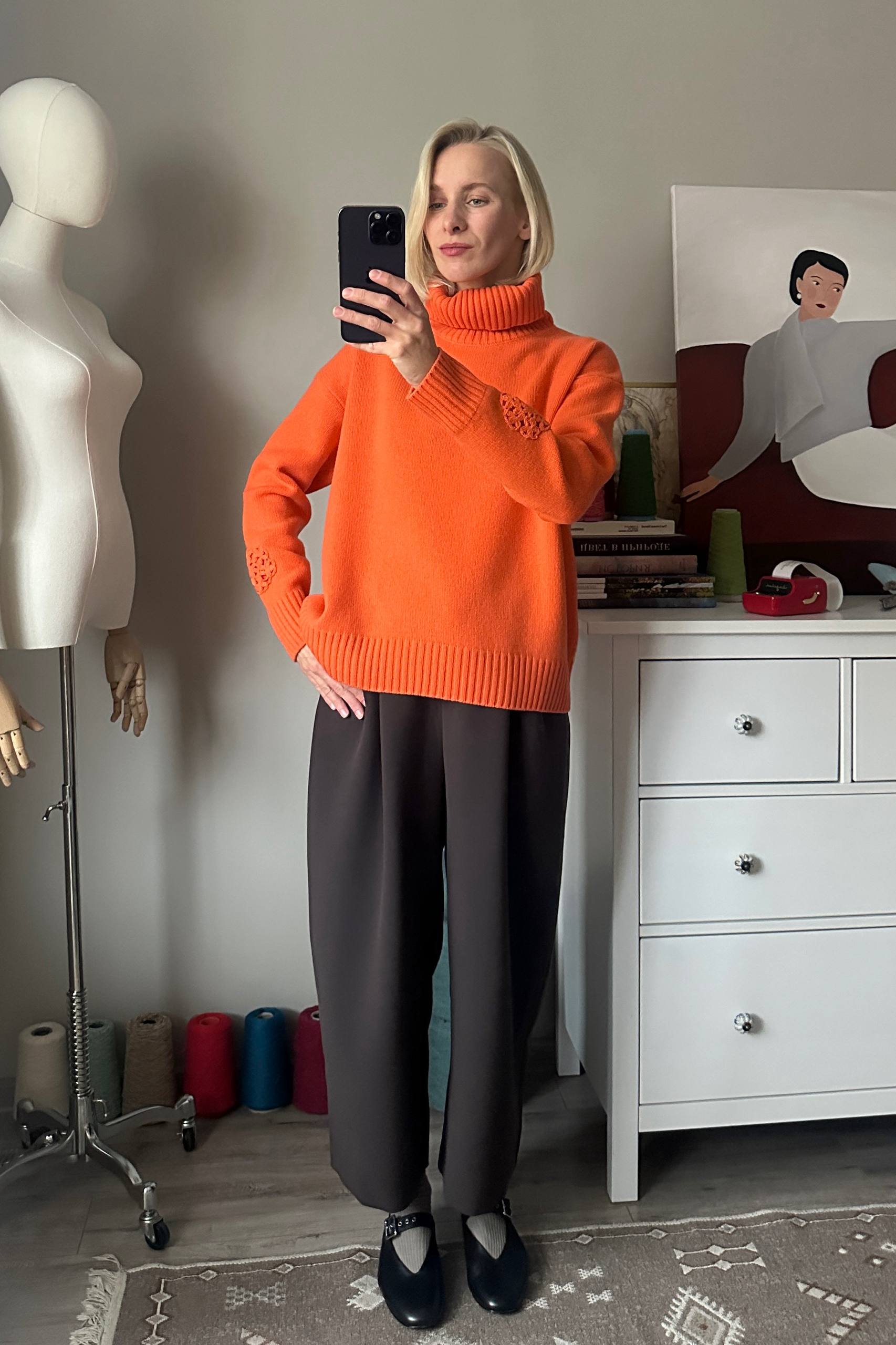 P.S. Джемпер мулине и шарф дело рук мамы (той самой, которая вяжет). Она у нас ответственная за такую пряжу и модели. Ношу не снимая несколько лет, все отлично.