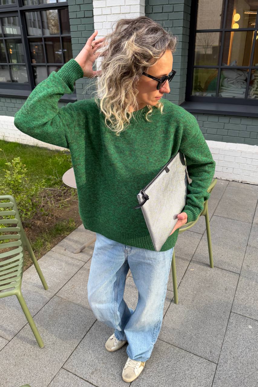 Если говорить о замороченности над деталями, то две полочки (перед и спинка) мы связали небольшим полукругом, то есть детали получились немного удлиненными по центру. Это почти незаметно, но тем не менее, вид у изделия получается более законченный и продуманный.