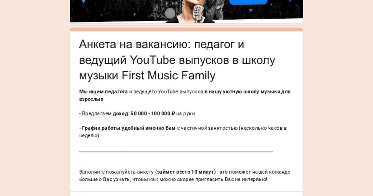 Если вам интересна вакансия — заполните, пожалуйста, анкету по ссылке: