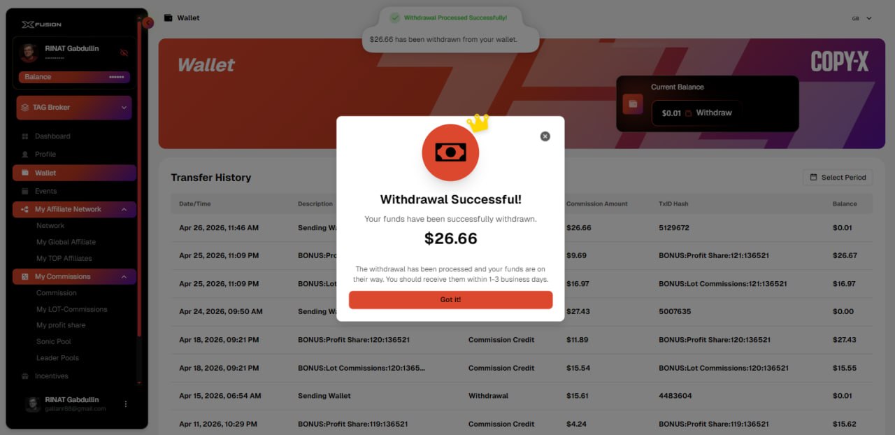 Вывел дивиденды, заработанные в компании💰
