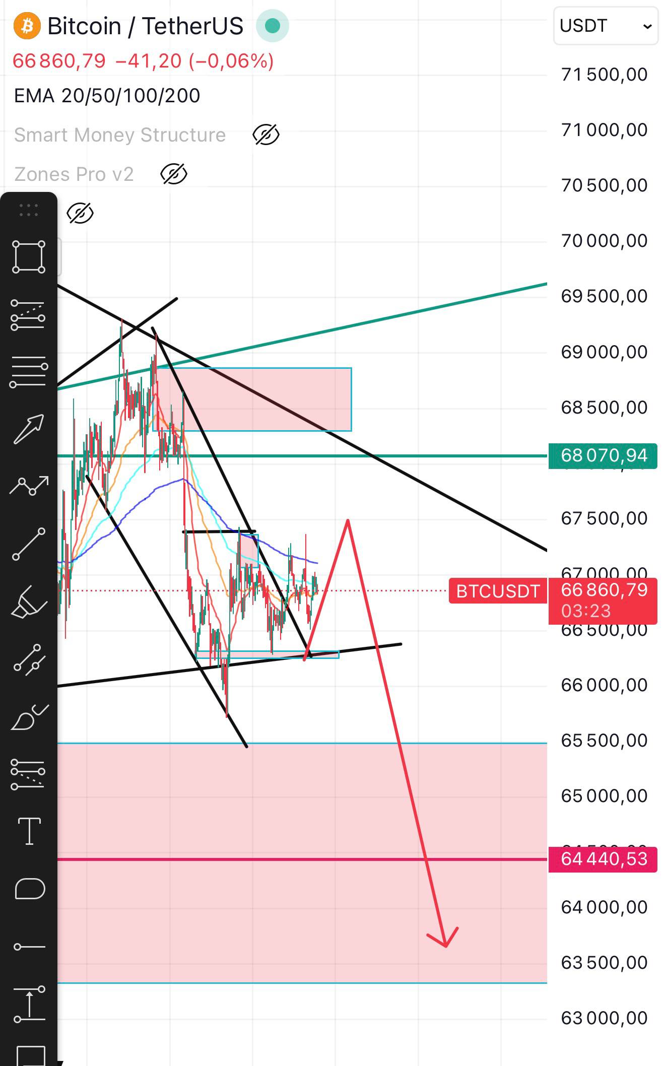 Очередной раз не сняли ликвидность там где она была. И это продолжается уже очень долго когда цена идёт в сторону маленькой ликвидности по технике, прошлый раз когда ликвидность была на 73 000 на 75 000 мы тоже её проигнорировали и пошли вниз в сторону маленькой ликвидности.