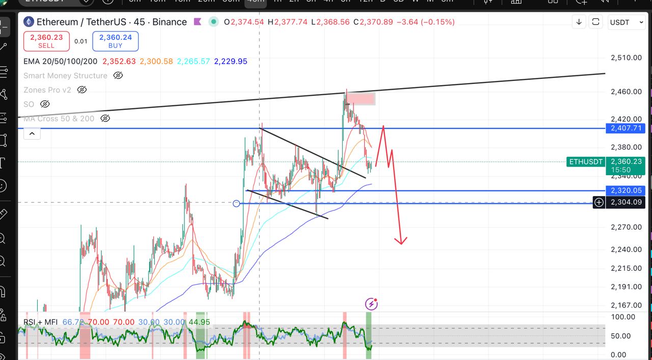 ожидания по BTC и ETH - с большей вероятностью максимуы поставили и сейчас логично постоять в боковике 1-2 дня, после чего начать снижение