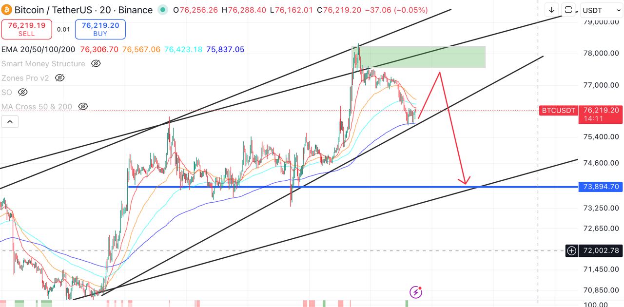 И буду добавлять шорт выше 77000….
