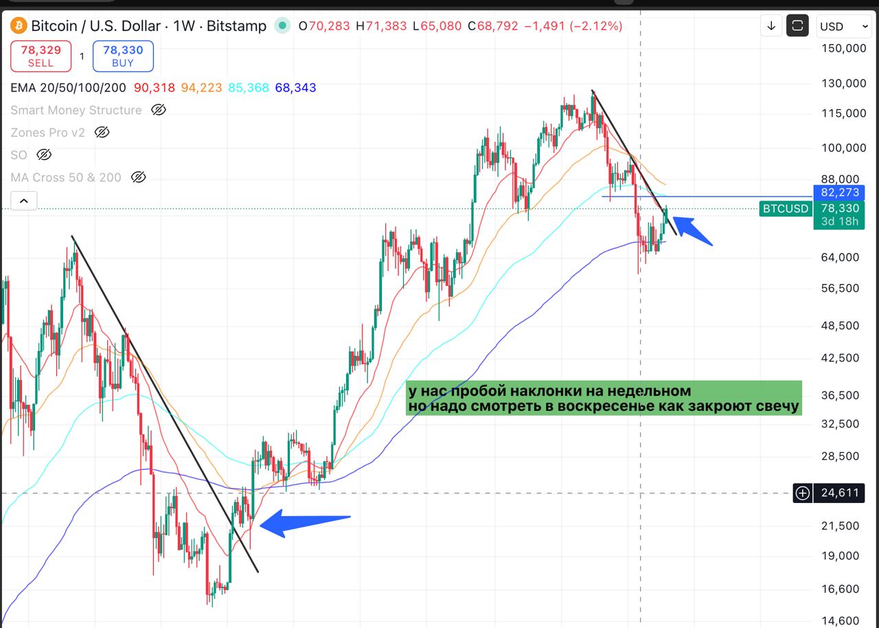 Если биткоин пробивает на дневке или 12ч 79500$