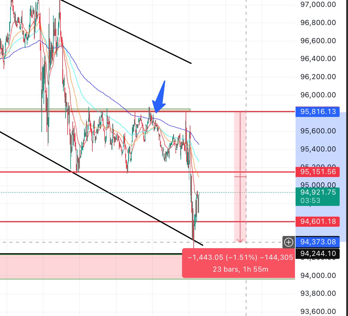 также технически после закрепа ниже 95800 мы должны идти на 94500-94000! и там уже лонг до 99 000!!
