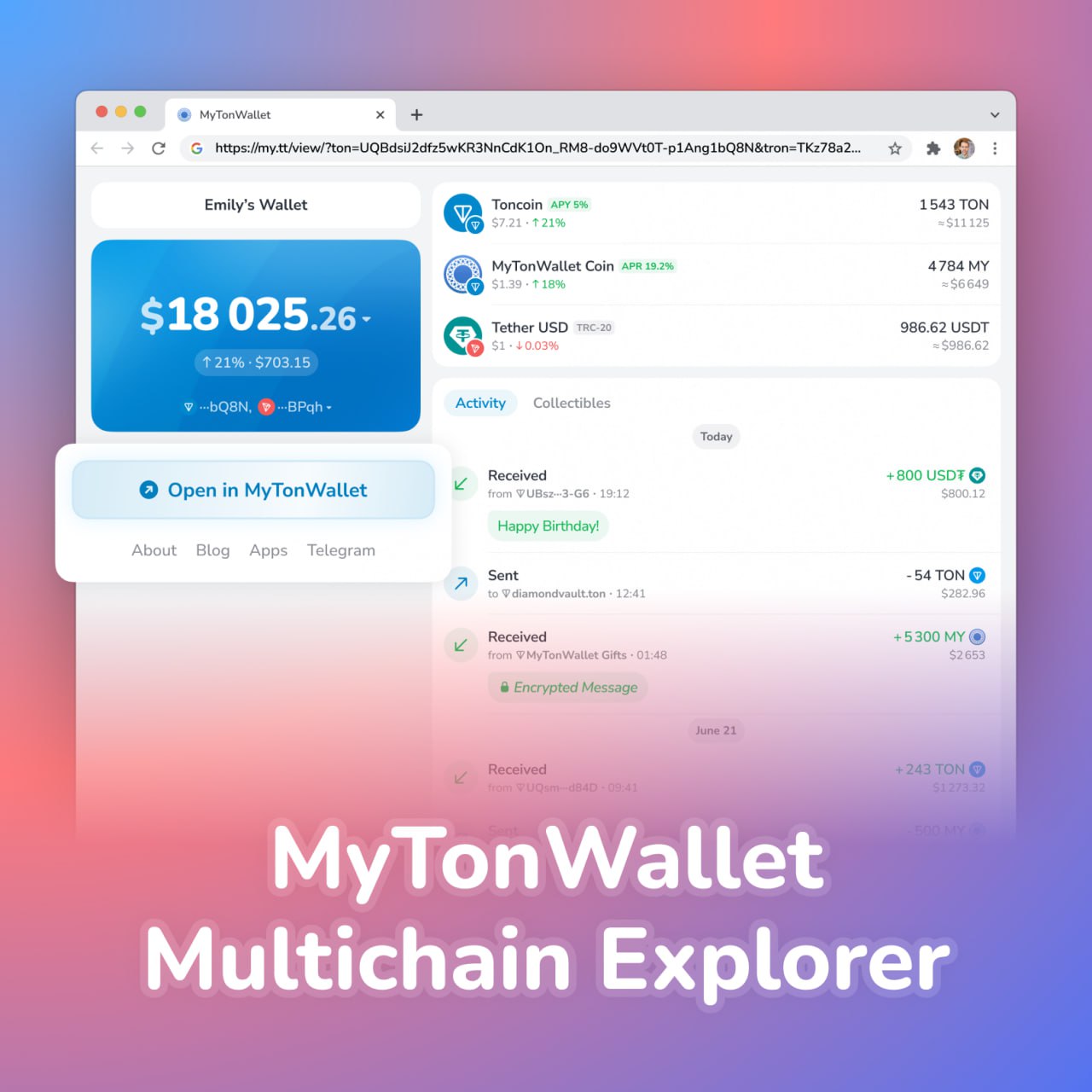 MyTonWallet now comes with its own multichain explorer, bringing wallets, transfers, and NFTs together in one clean and convenient interface—available both in the app and on the web.