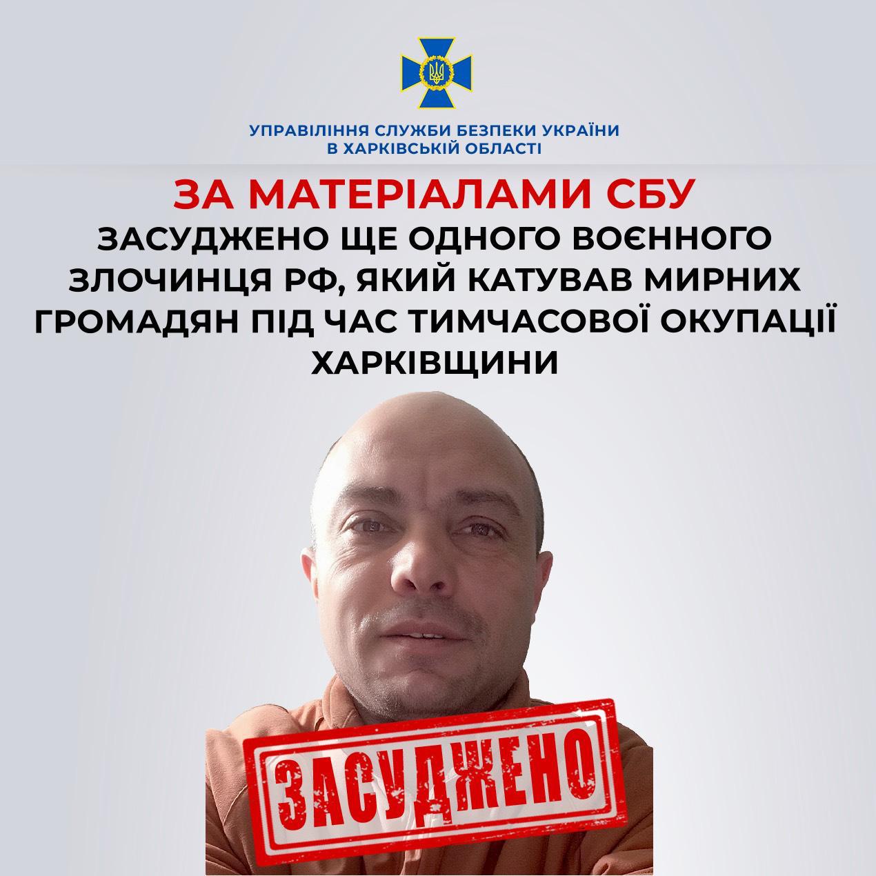 За матеріалами СБУ заочно засудили воєнного злочинця рф, який катував мирних жителів.
