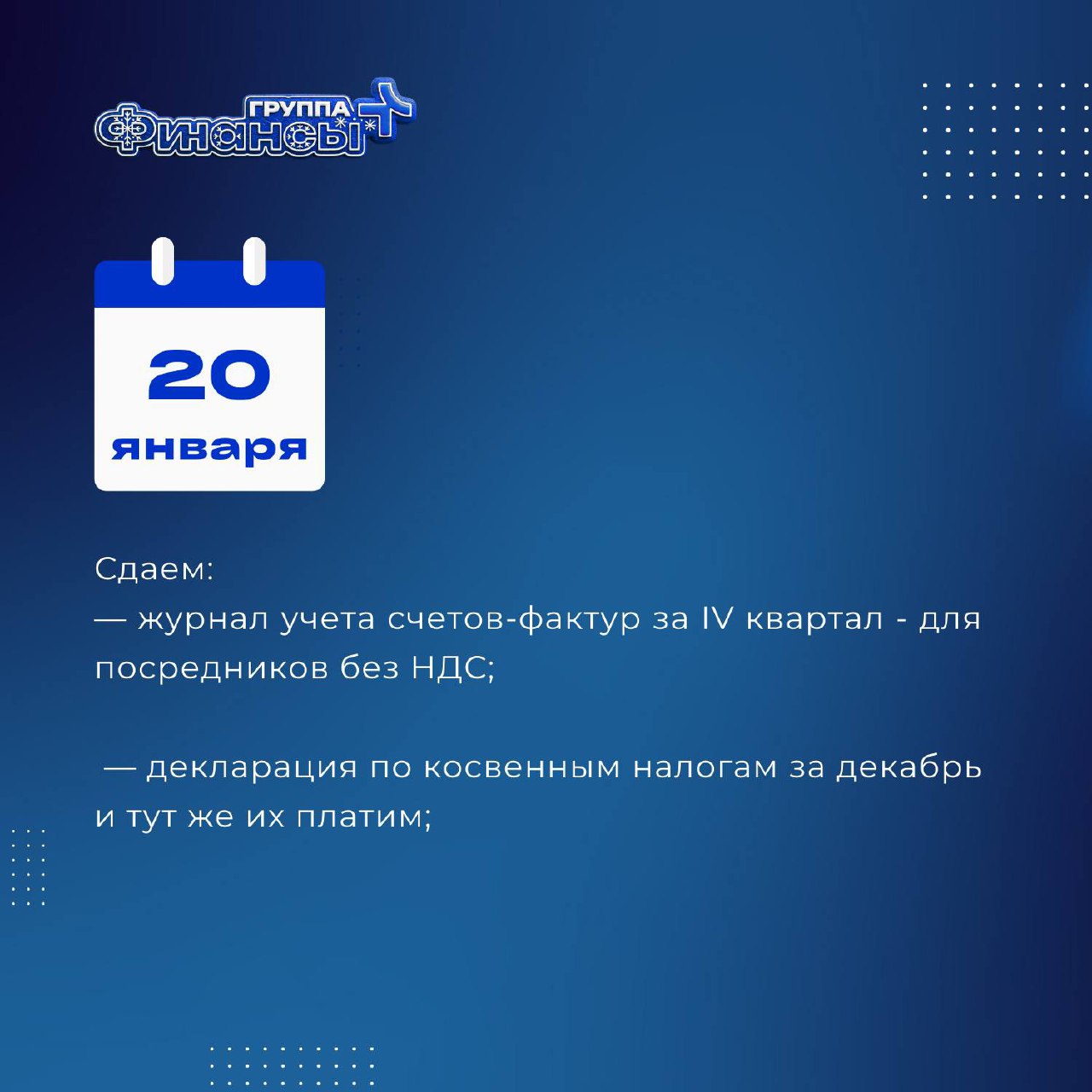 ⏩ декларация по косвенным налогам за декабрь и тут же их платим.