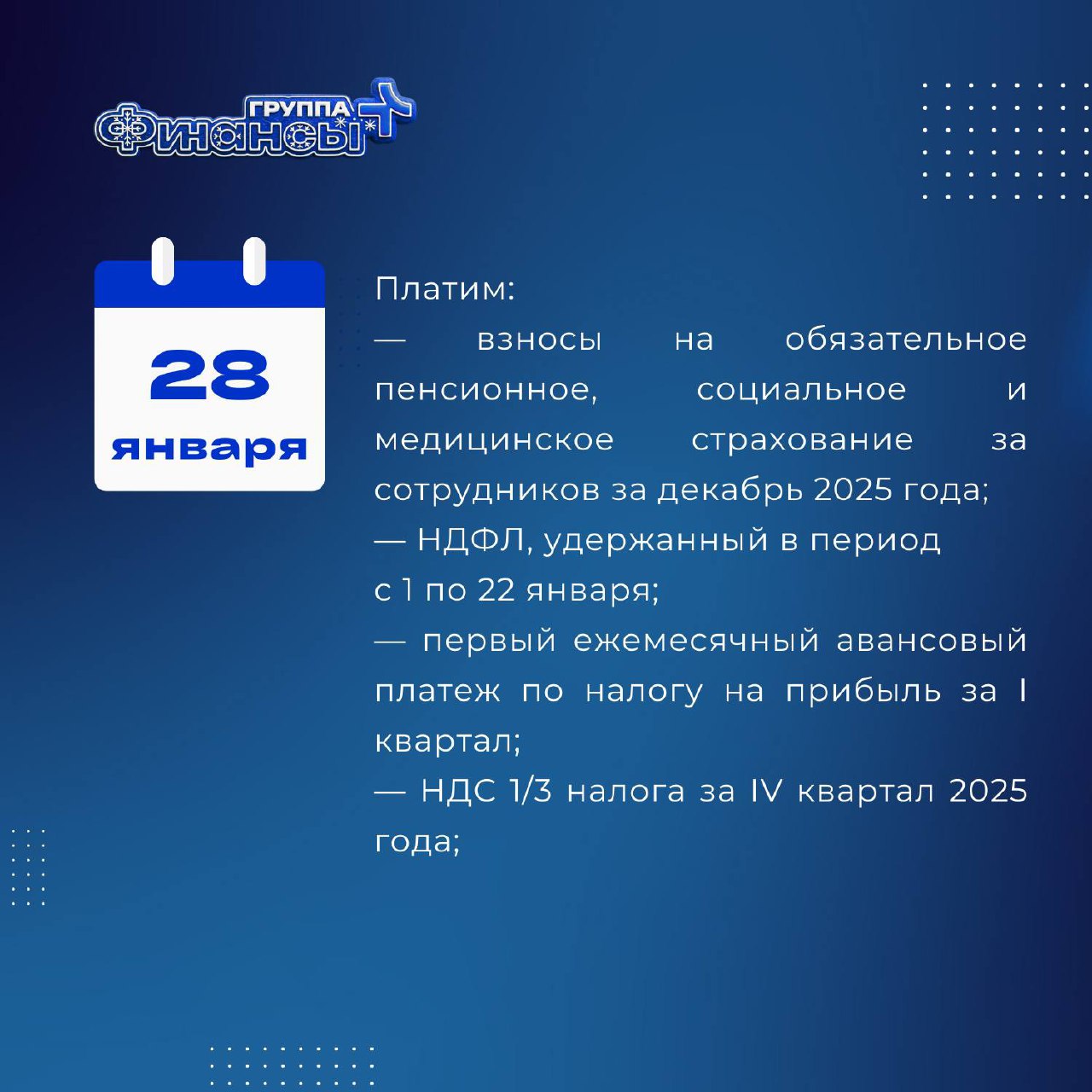 ▶️ 28 января — платёжный максимум месяца: заранее готовим кошелёк и морально выдыхаем — после этого станет легче (🗿):