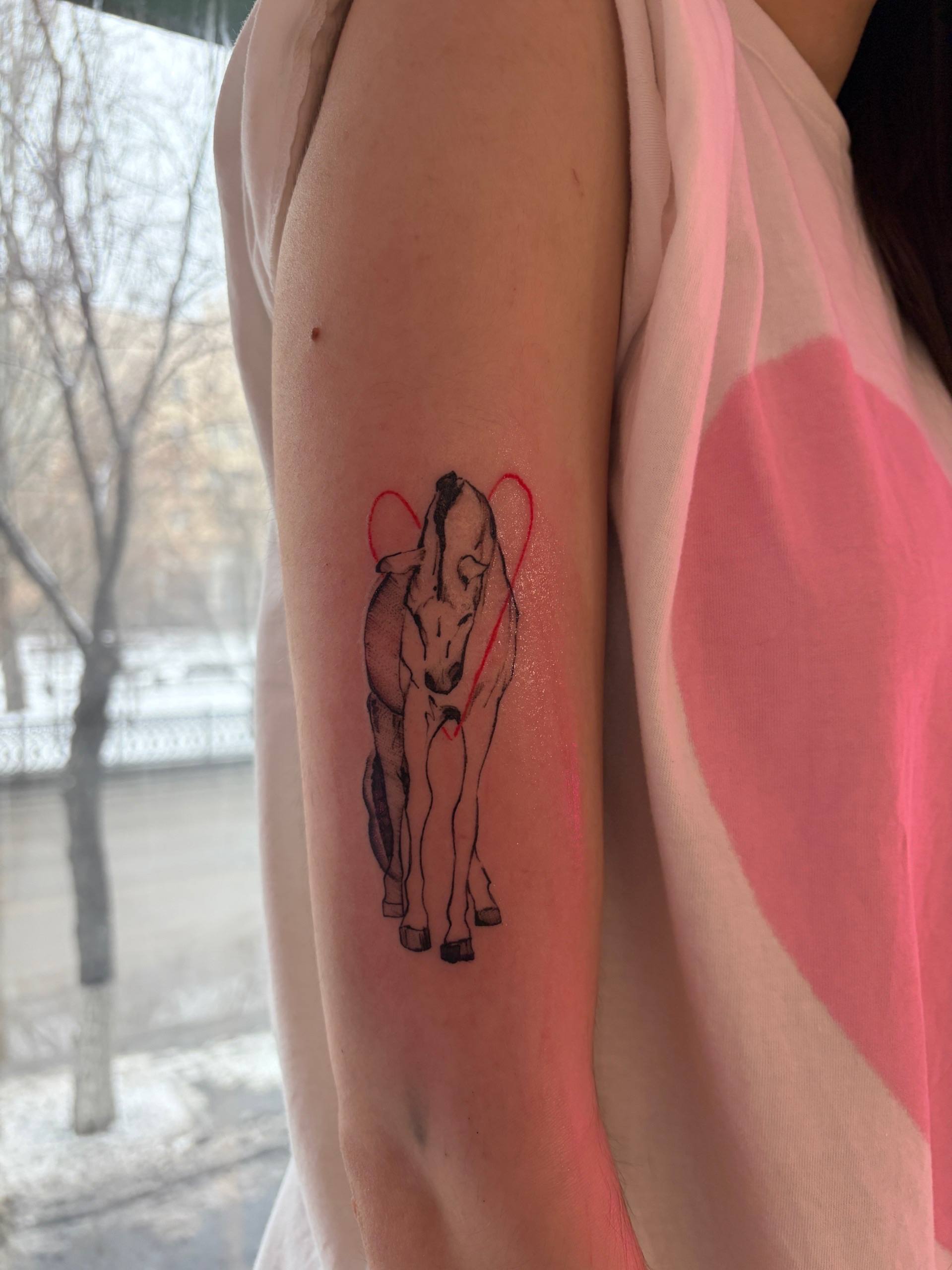 Настя, я очень хочу с тобой поделиться и выразить огромную благодарность за твое творчество, которое пробивает меня до глубины души. Я ранее видела, что ты писала, что не против когда кто-то делает тату по твоим рисункам. И вот моя первая тату, символично в год лошади, которая сделана по твоему рисунку. Спасибо за вдохновение, светлость, человечность и свободу 🤍Безмерно люблю и уважаю тебя и то, что ты делаешь🫶🏼