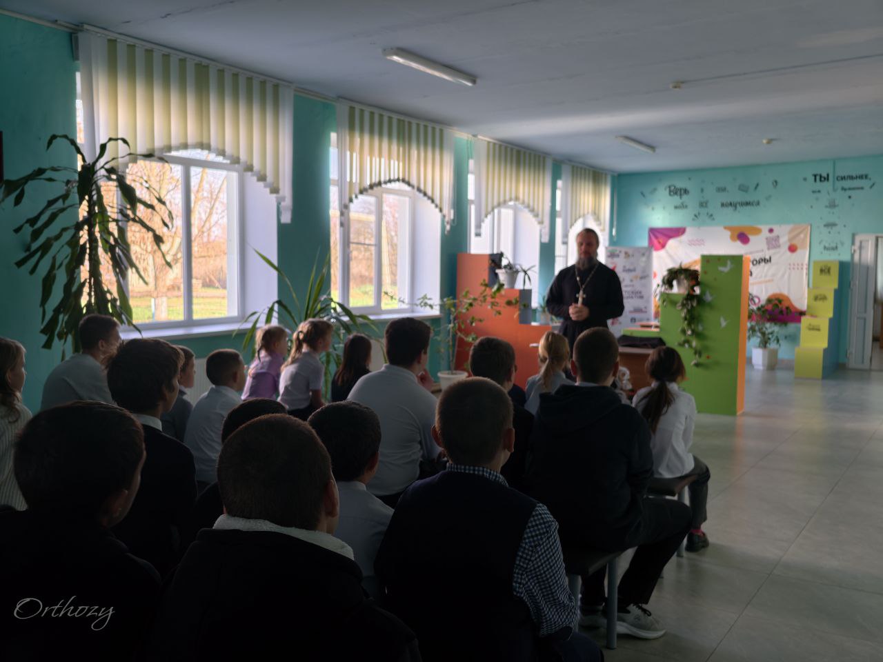 В конце встречи священник ответил на многочисленные вопросы школьников.