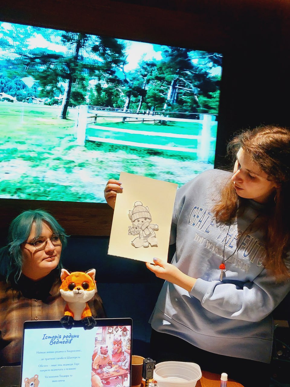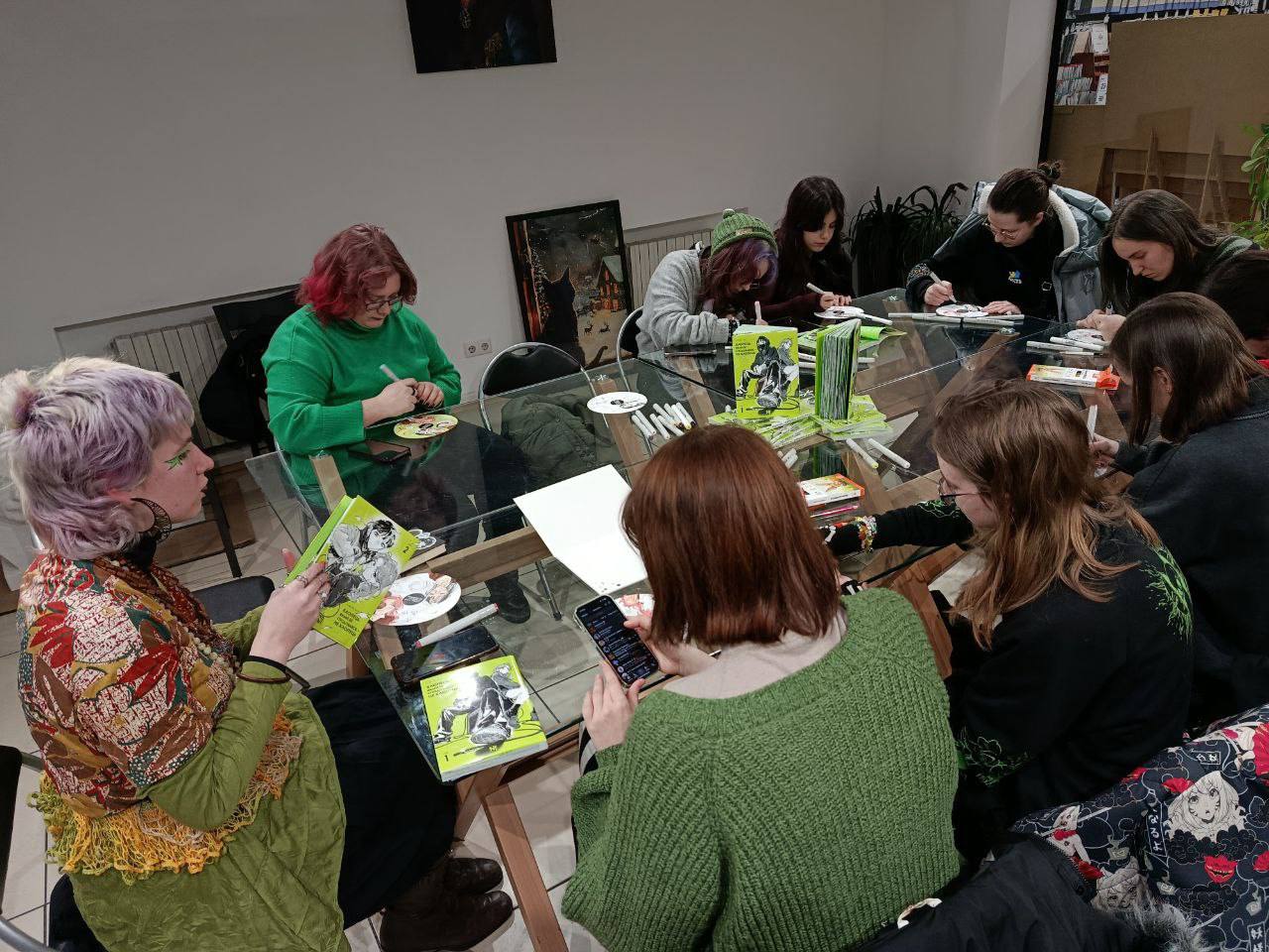Київська зустріч пішла іншим, але не менш захопливим шляхом. Поруч із малюванням ми глибше занурилися в тему музики — говорили про улюблені жанри, плейлисти та те, як звук формує сприйняття персонажів і всієї історії загалом.