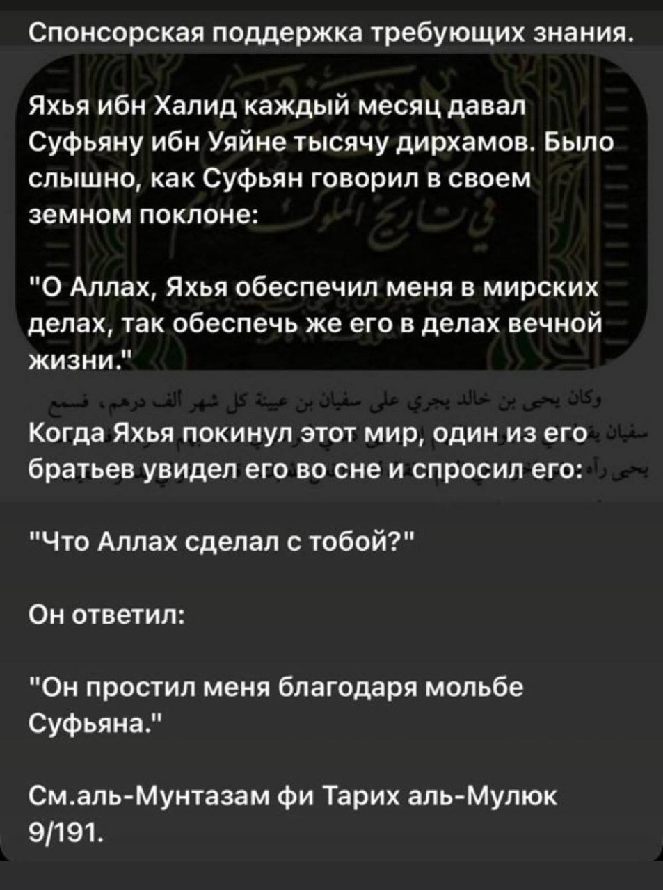 «Если есть стремящийся к знанию, занятый его приобретением и обучением, то помощь такому является одним из наилучших деяний, приближающих к Аллаху».