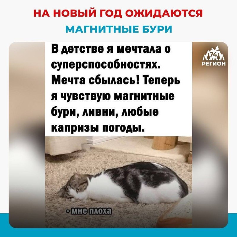 🧲 Декабрь принесет метеозависимым испытания: магнитные бури не утихнут даже на Новый год Декабрь окажется настоящим испытанием для людей, чувствительных к изменениям погоды — магнитные бури будут активны на протяжении всего месяца, включая празднование Нового года. Наиболее сложный период ожидается с 21 по 26 декабря. В это время возможны головные боли, общее недомогание и ухудшение состояния хронических заболеваний. ❓ А вы чувствуете приближение магнитных бурь? 🌄 Расскажи свою новость всему региону. Напиши нам @nashregion74bot