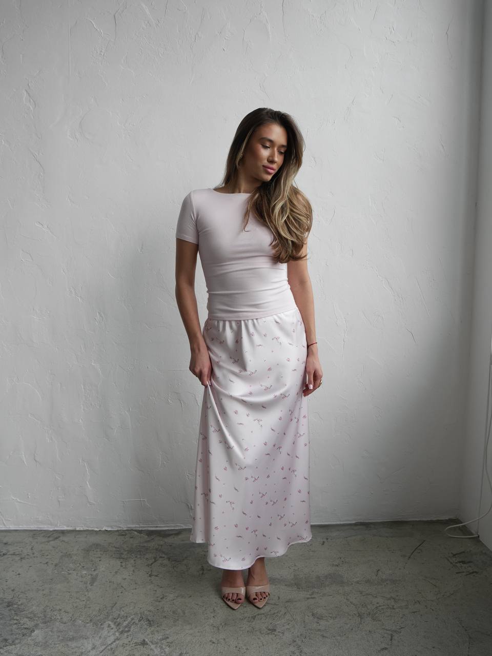Юбка атласная в цветочек